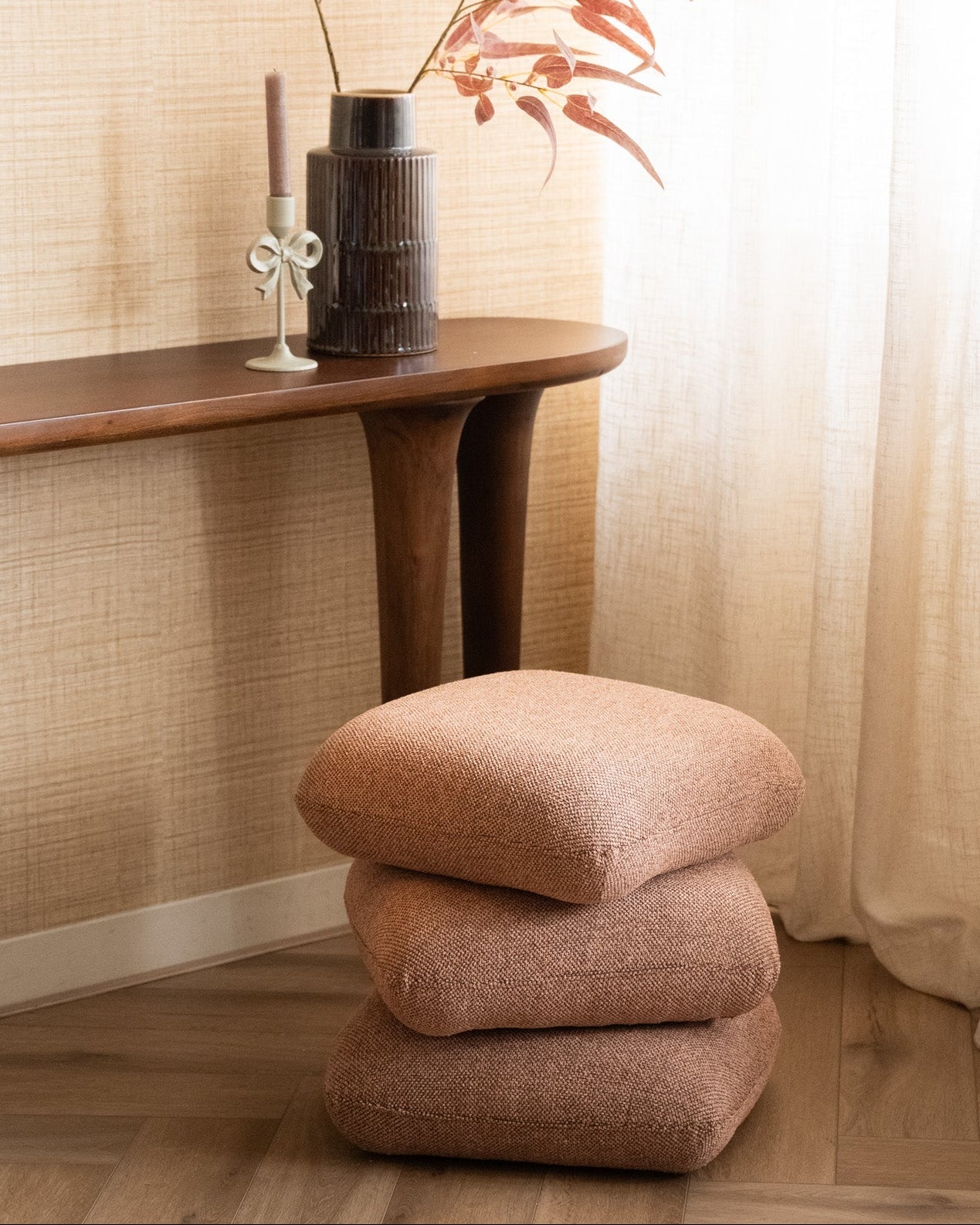 Der Laurie Terra Pouf ist warm, weich und vielseitig. Dieser bequeme Pouf in warmem Terrakotta verleiht Ihrem Zuhause sofort ein behagliches Ambiente. Der robuste, grob gewebte Stoff sorgt für eine natürliche, gemütliche Optik, während die weiche Sitzfläche zum Entspannen oder als zusätzliche Sitzgelegenheit einlädt. Ein stilvoller Blickfang, der sich mühelos in Wohn- oder Schlafzimmer einfügt.