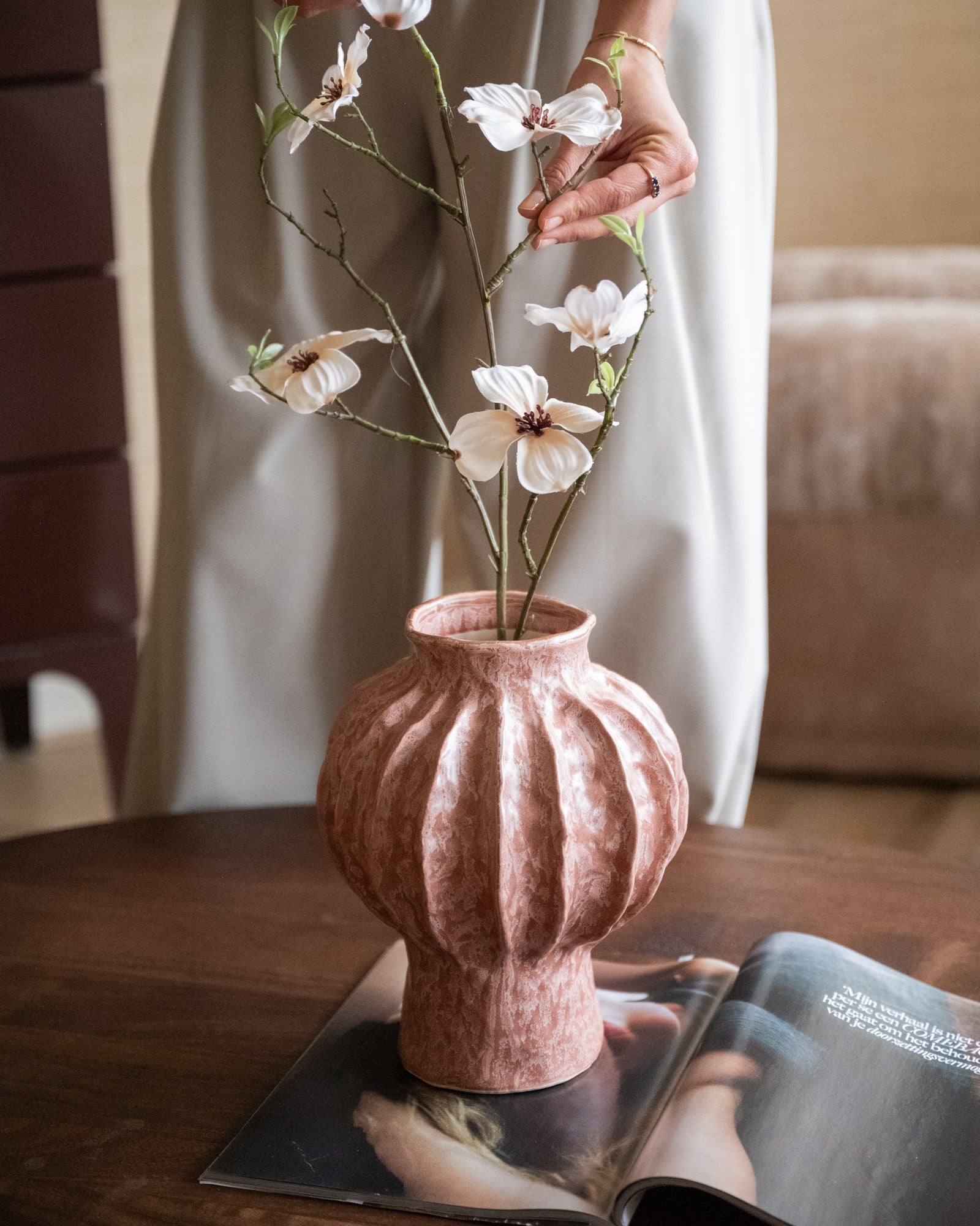 Die Deco Vase Hakone Coral ist eine stilvolle Keramikvase mit organischer Form und warmem Korallenton. Ihre dezente Textur und der sanfte Glanz verleihen jedem Raum eine elegante, natürliche Note. Sie wirkt wunderschön mit ein paar einzelnen Zweigen oder auch als dekoratives Element für sich allein.