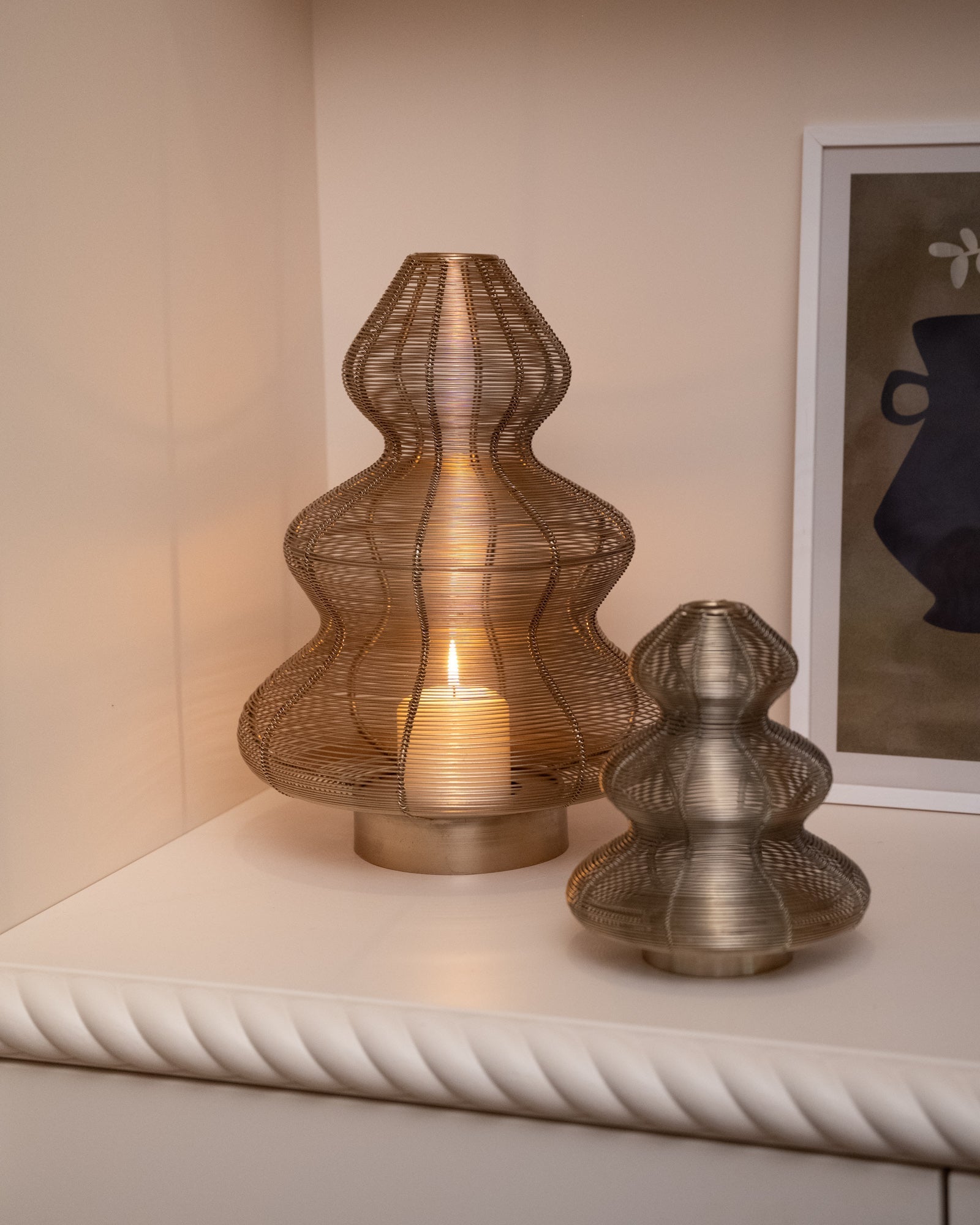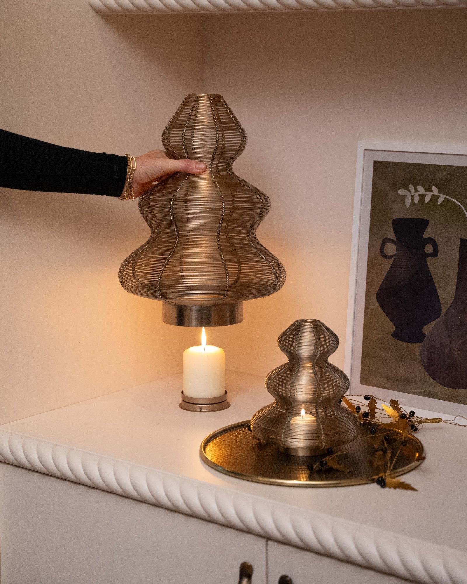 Deze mooie grote theelichthouders geven de ruimte een kerstsfeer op een stijlvolle manier. Het licht valt mooi tussen de metalen draadjes door wat zorgt voor heel gezellig licht. Perfect voor op de schauw, in de kast of tijdens je kerstdiner op de bar of op tafel...