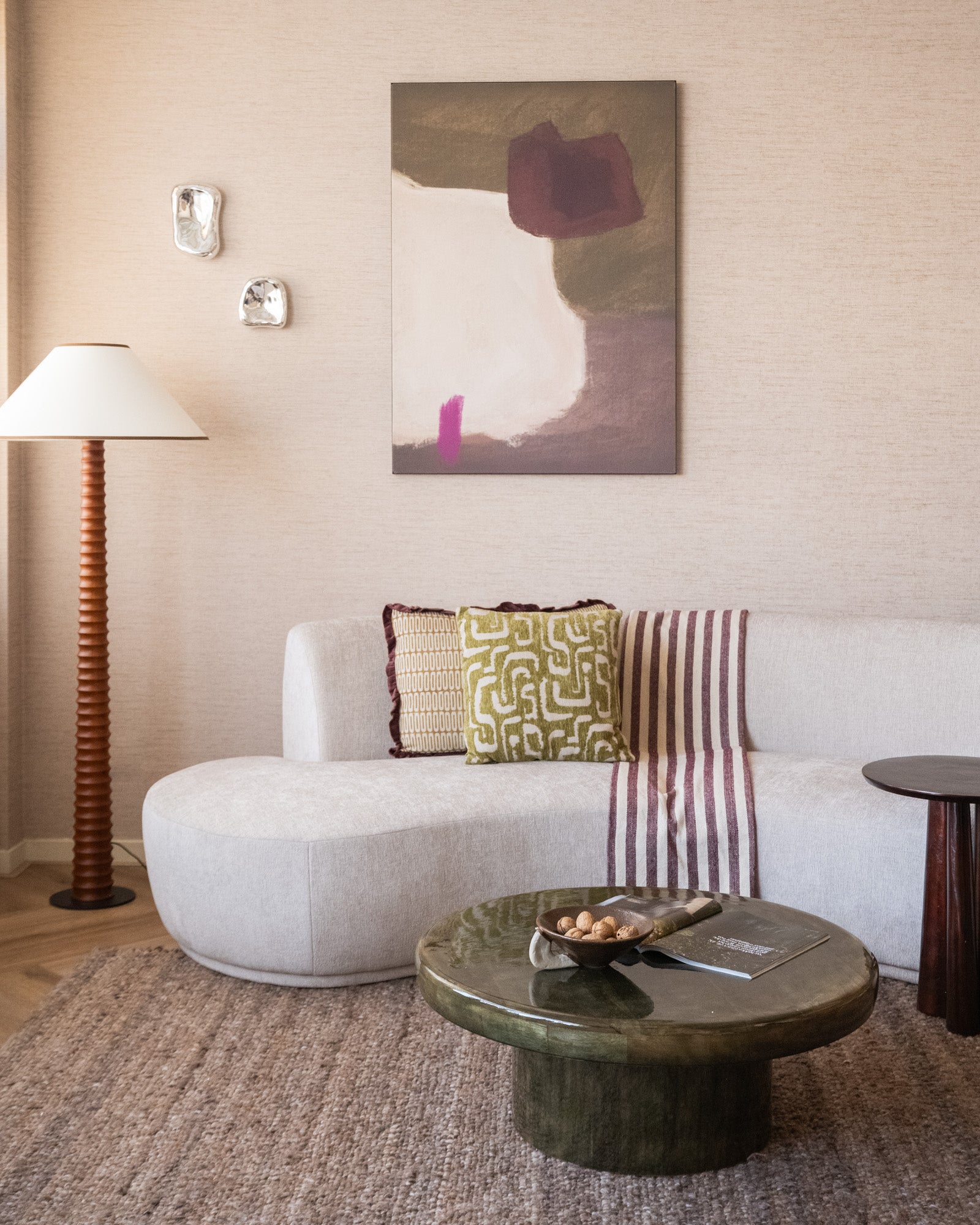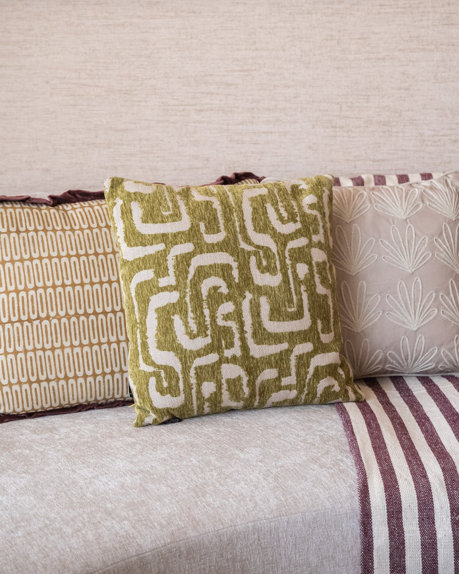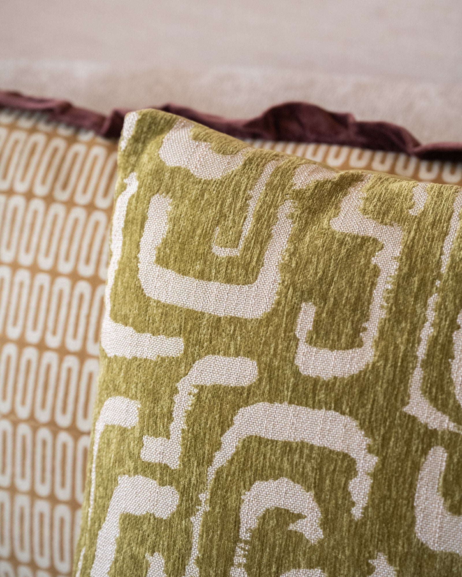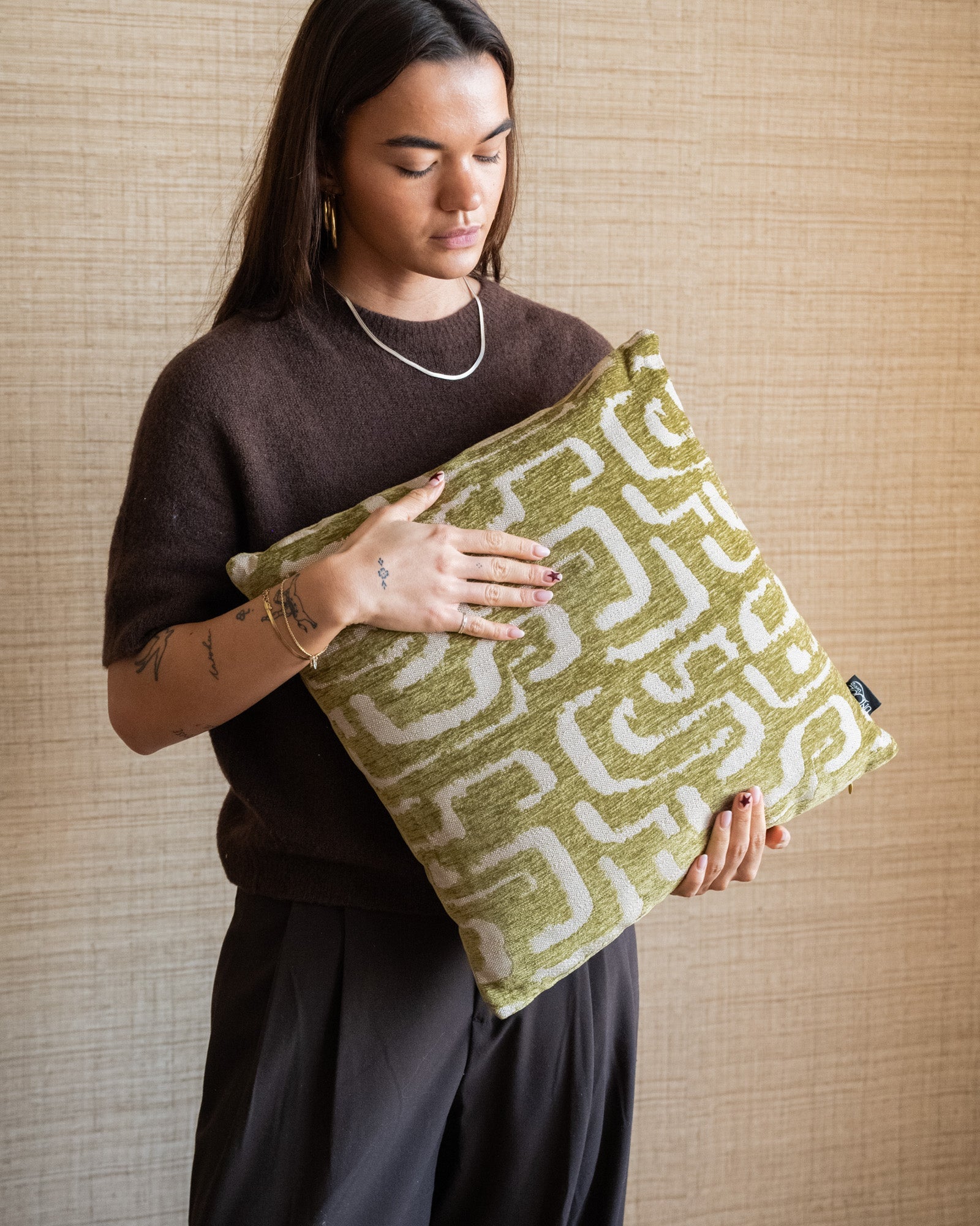 Das Kissen „Liam Matcha Green“ ist ein stilvolles Dekokissen mit einem verspielten grafischen Muster in einem sanften Matcha-Grünton. Die hochwertige Textur und das dezente Relief verleihen dem Kissen eine luxuriöse Optik und sorgen für zusätzlichen Komfort auf Sofa, Sessel oder Bett.