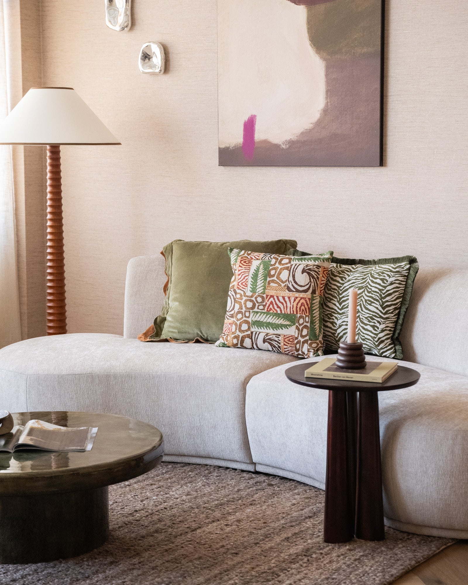 Das Kissen „Nasira Jungle“ ist ein echter Hingucker mit seinem verspielten Mix aus Pflanzenmotiven, Tiermustern und warmen Erdtönen. Die Kombination aus Grün, Terrakotta und Braun verleiht Ihrem Interieur sofort ein natürliches, vom Dschungel inspiriertes Flair. Perfekt, um Sofa, Sessel oder Bett stimmungsvoll und individuell zu gestalten.