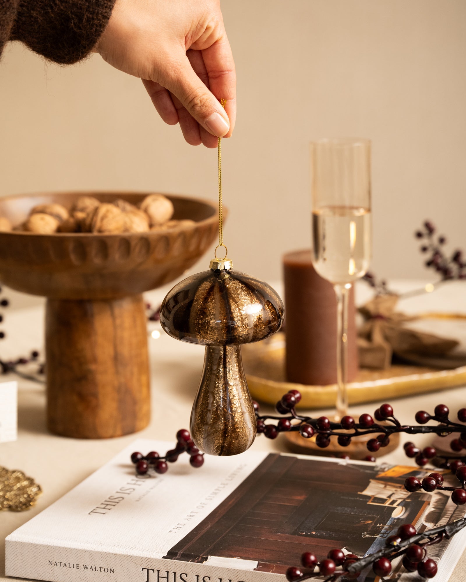 Verleihen Sie Ihrem Weihnachtsbaum mit diesem glitzernden Pilz eine einzigartige und stilvolle Note! Die glänzende Oberfläche in warmen Brauntönen sorgt für einen nostalgischen und gleichzeitig modernen Look. Perfekt für alle, die eine festliche Boho-Atmosphäre mit einem Hauch Natur lieben. Hängen Sie ihn einzeln auf oder kombinieren Sie ihn mit anderen Ornamenten für einen verträumten, märchenhaften Look.