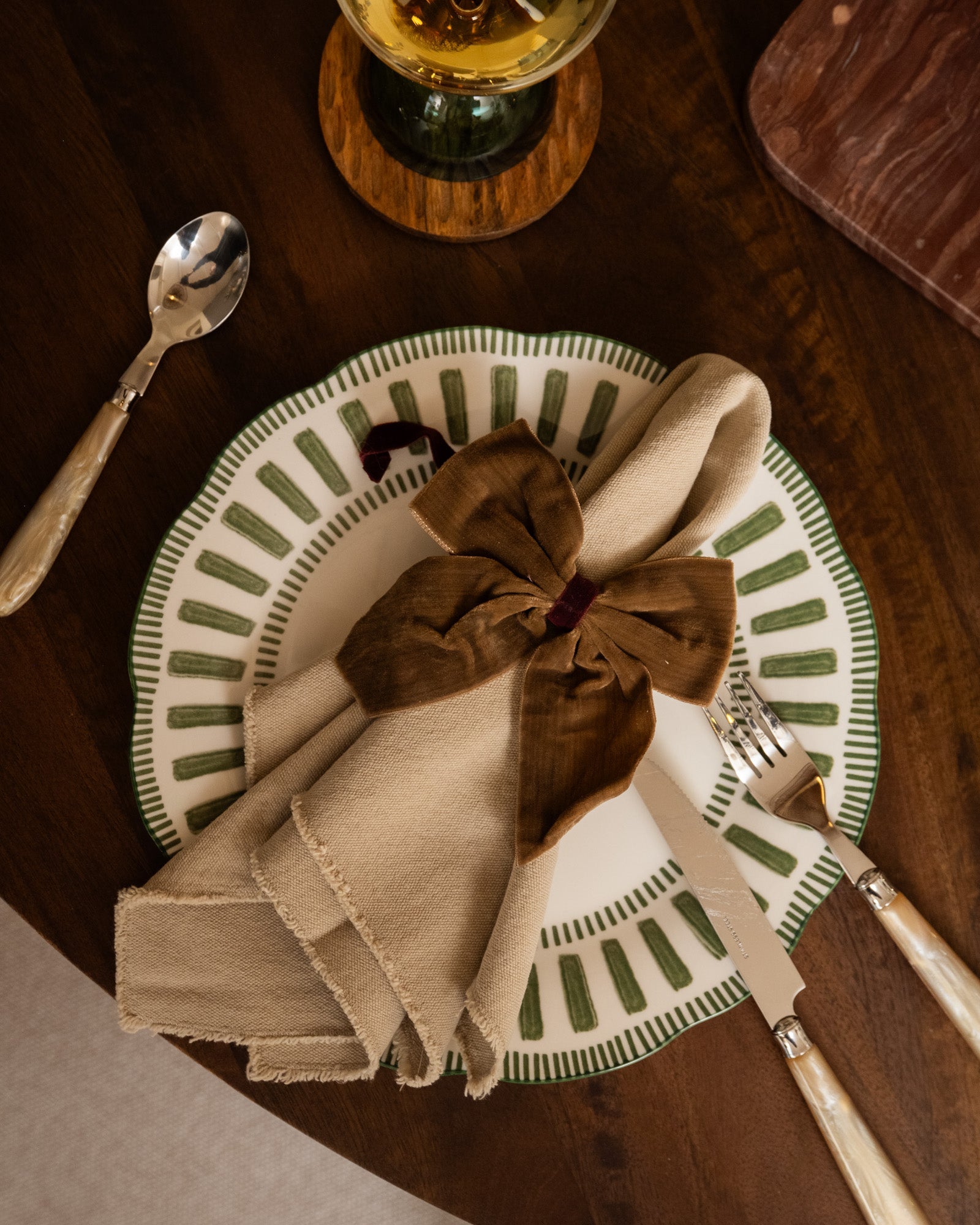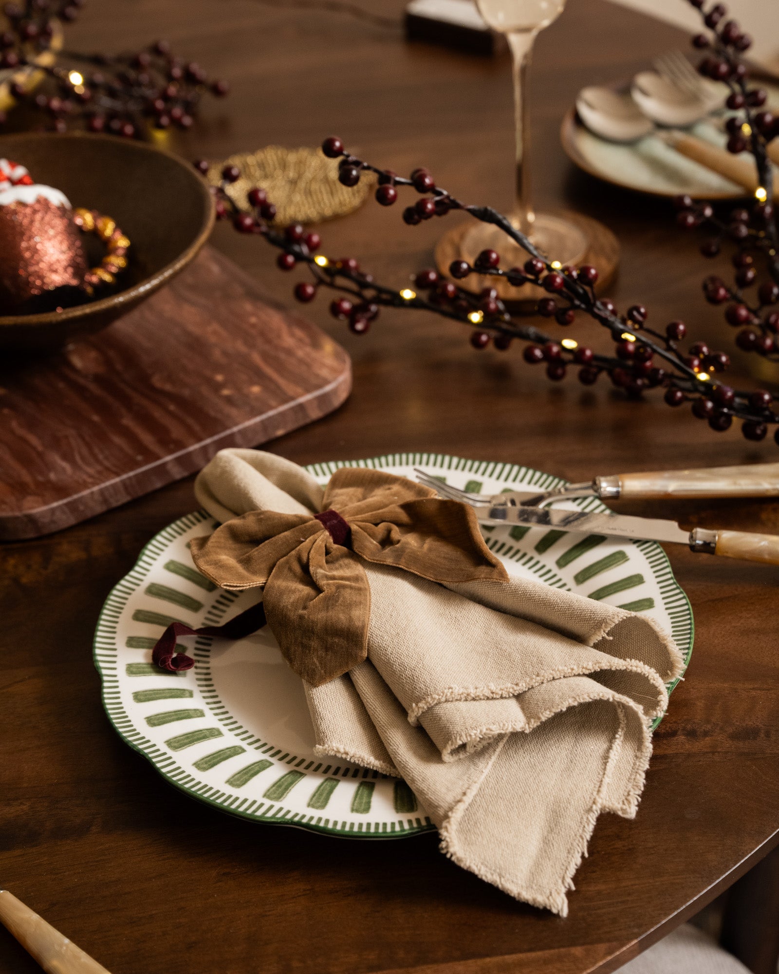 Verleihen Sie Ihrer Weihnachtsdekoration mit diesem 4er-Set Samtschleifen Wärme und Eleganz. Die Samtschleifen in sanften Naturtönen verleihen Ihrem Weihnachtsbaum, Ihrer festlich gedeckten Tafel oder Ihren Geschenkverpackungen einen luxuriösen und klassischen Look. Dank des dezenten Bandes lassen sie sich mühelos überall aufhängen. Perfekt für alle, die einen stilvollen Vintage-Weihnachtslook lieben.