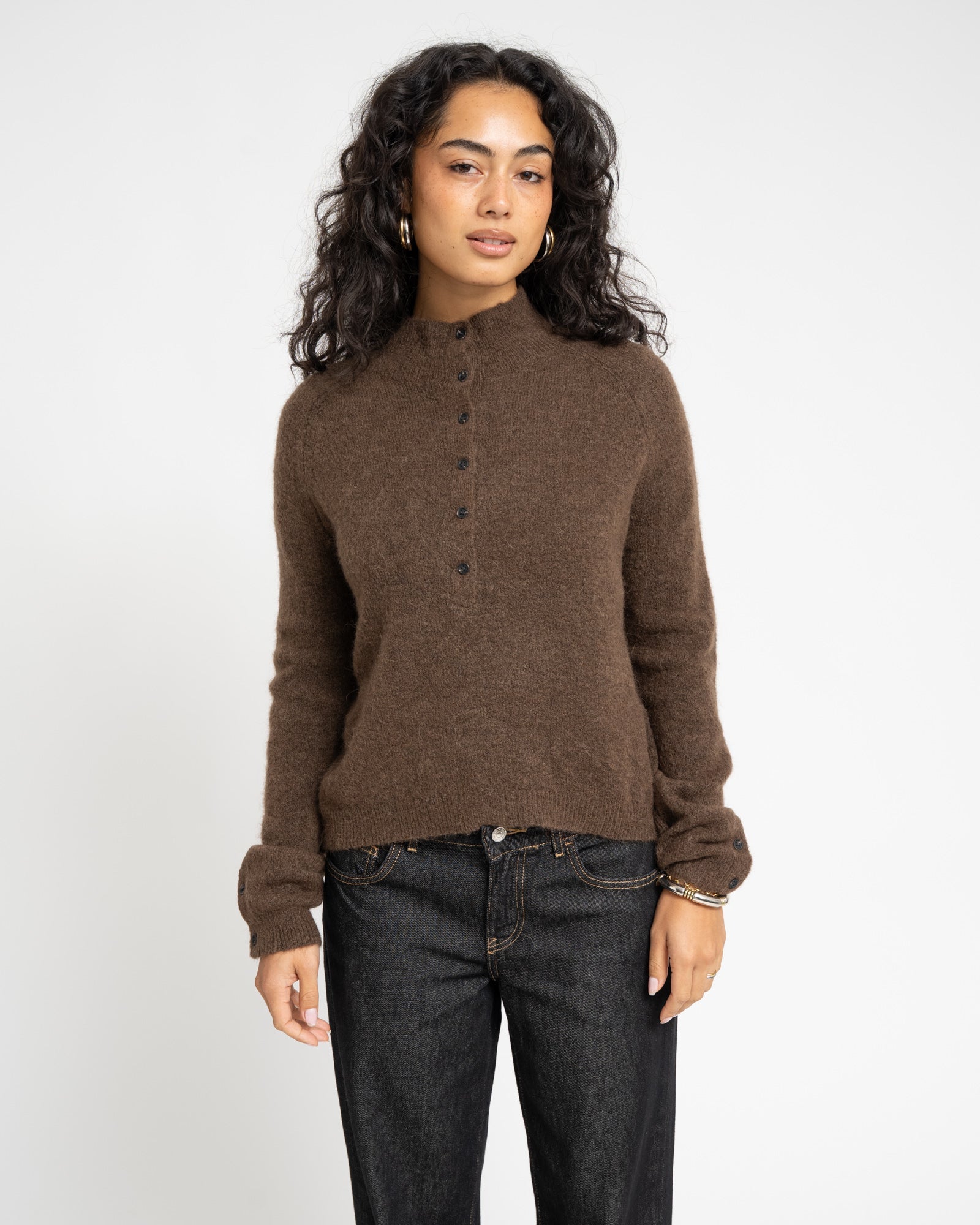 | Details | Rundhalsausschnitt, Knopfverschluss, Gestrickt |