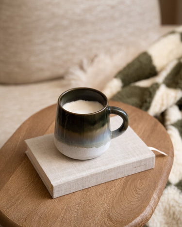 Diese große Mojave -Glasurbecher ist in einem erdigen Grün fertig. Die rustikale Textur und der Dip -Ombre -Effekt werden aus der reaktiven Glasur erzeugt, die subtile Variationen der Farbtöne bildet, wodurch jedes einzelne einzigartig ist.
