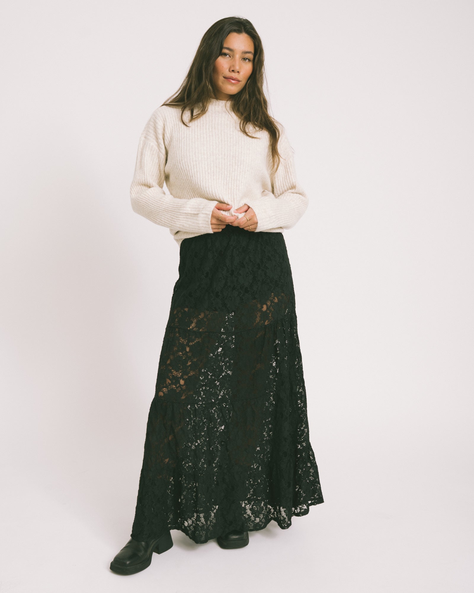 Der Lela Spitzenrock ist ein fließender Maxirock aus schwarzer Spitze mit integrierten Shorts darunter: bequem und stylisch. Perfekt für Festivals, sonnige Tage oder einen Abend in der Stadt. Kombiniere ihn mit einem schlichten Top oder coolen Bikerboots und schon bist du bereit.