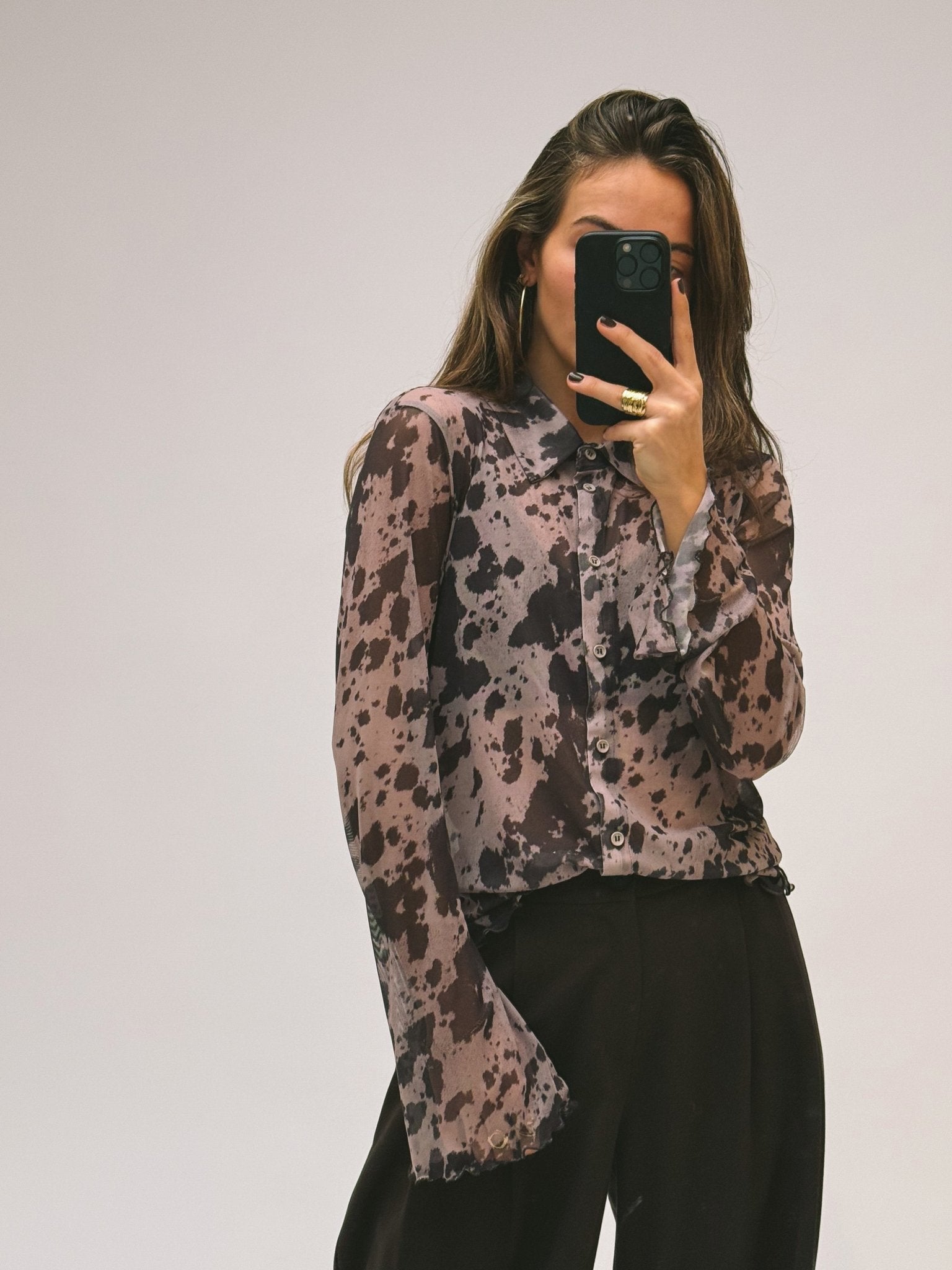Statement-Alarm 🐄. Diese transparente Bluse mit Kuh-Print wertet deinen Look sofort auf. Perfekt zum Stylen mit deiner Lieblingsjeans.