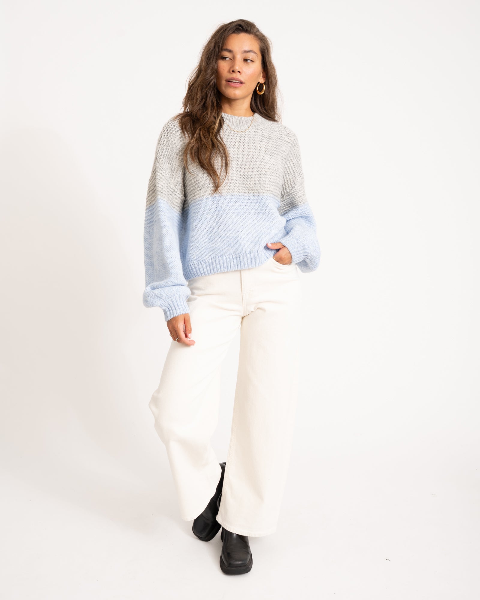 Ophelia High Neck Strick Kaschmir Blau/Grau Melange
