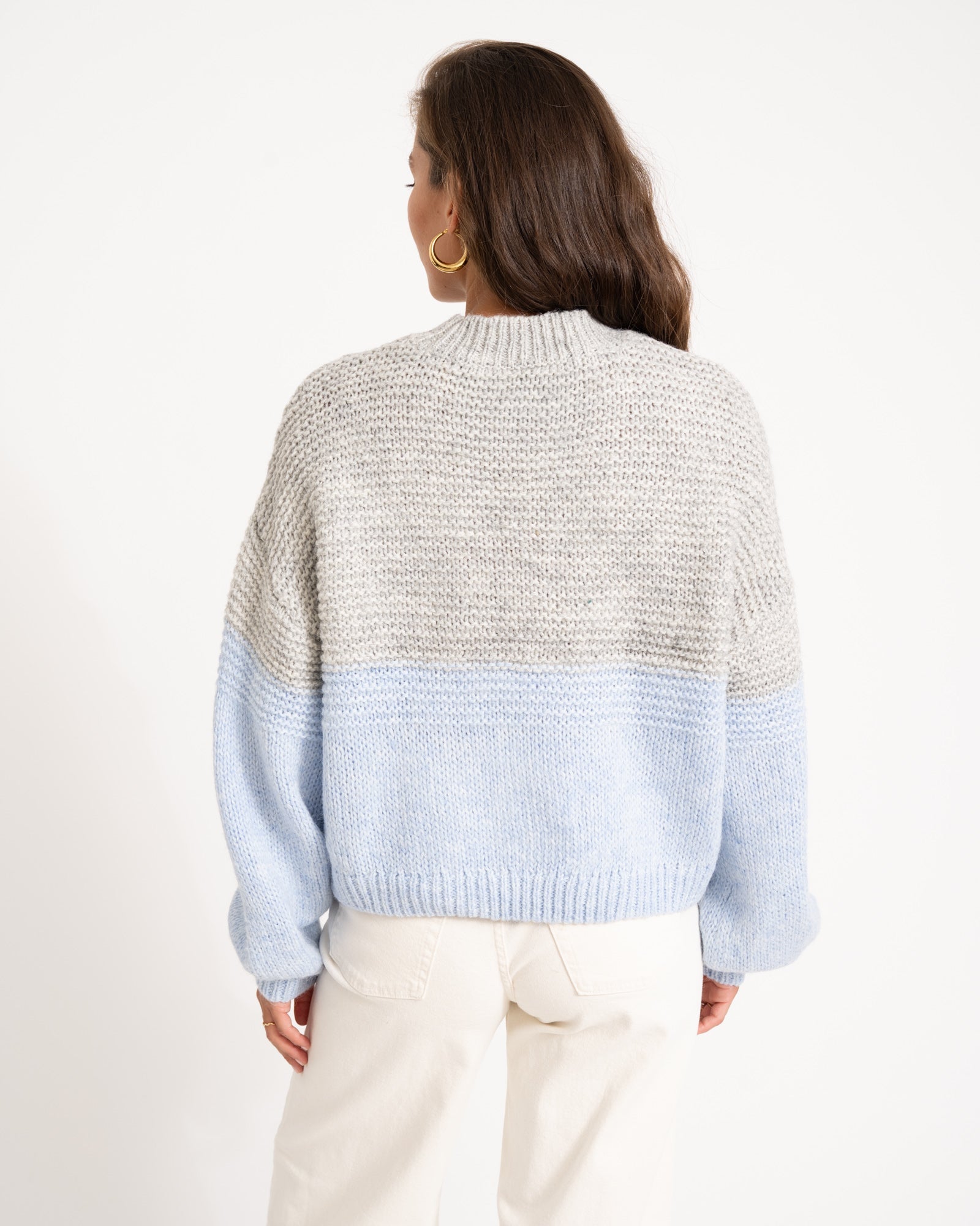 Gemütlicher Pullover im Farbblockdesign mit hohem Rundhalsausschnitt und entspannter Passform.