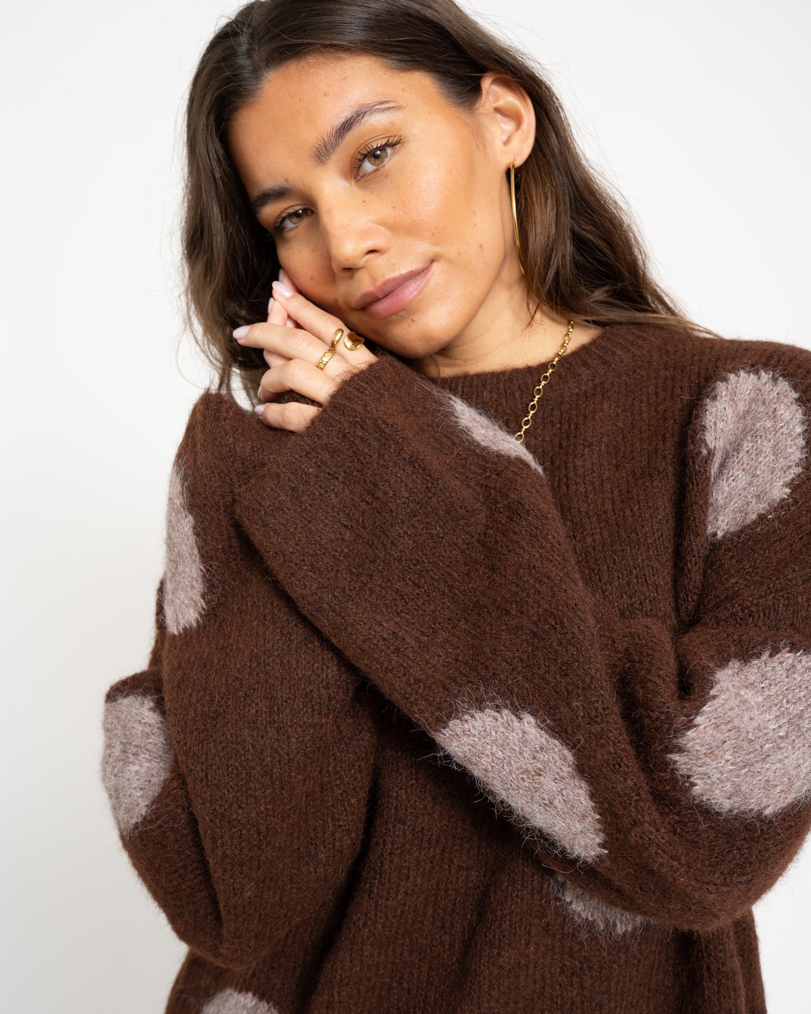 Sutton Polka Dot Oversize Strickpullover in der Farbe French Roast