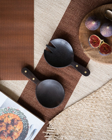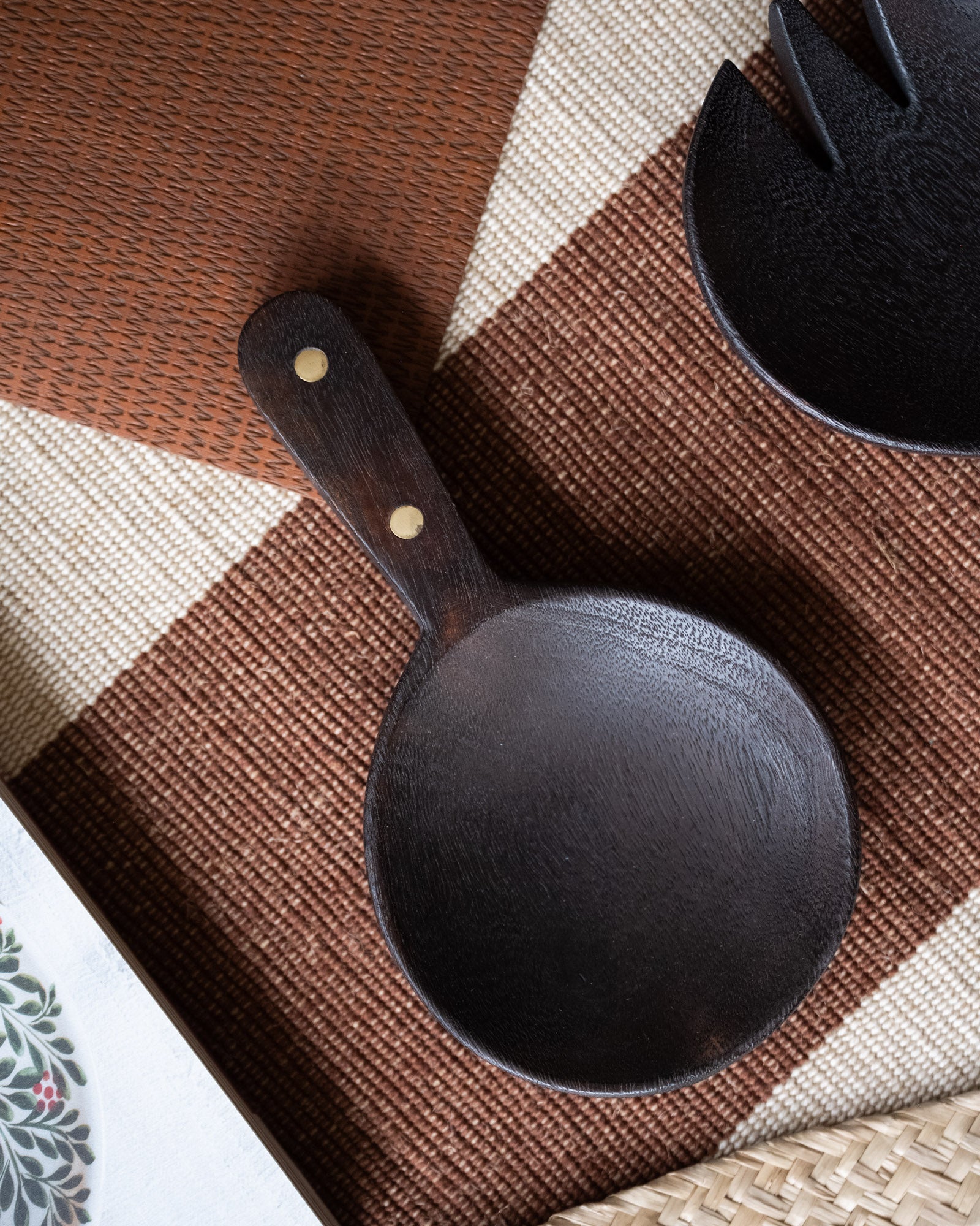 Verleihen Sie Ihrem Tisch mit dem Zen-Salatbesteck aus Mangoholz in abgerundeter Form natürliche Eleganz. Es eignet sich perfekt zum Servieren von Salaten oder als dekoratives Element in der Küche. Der warme, dunkle Holzton bringt Ruhe und Stil in jede Mahlzeit.