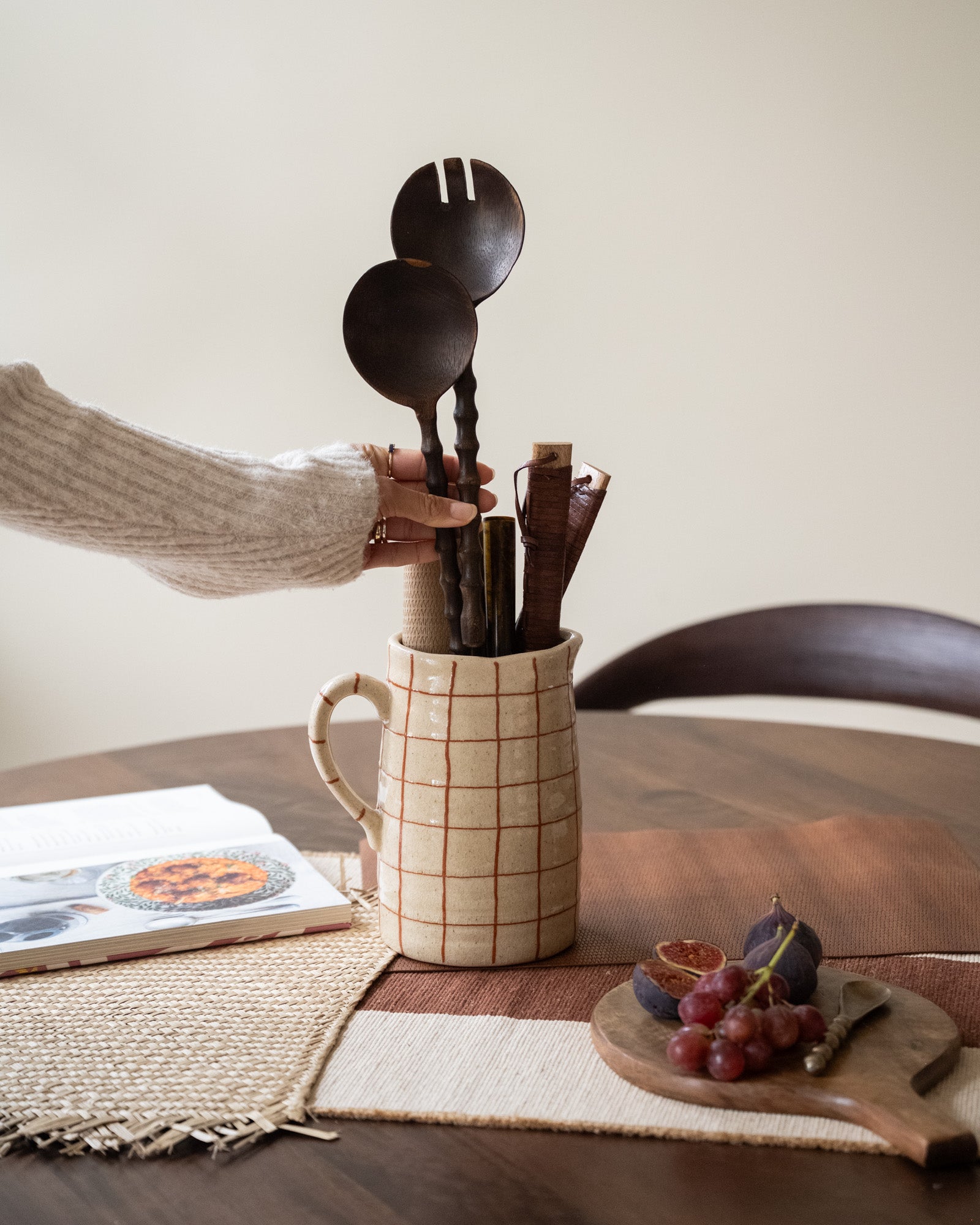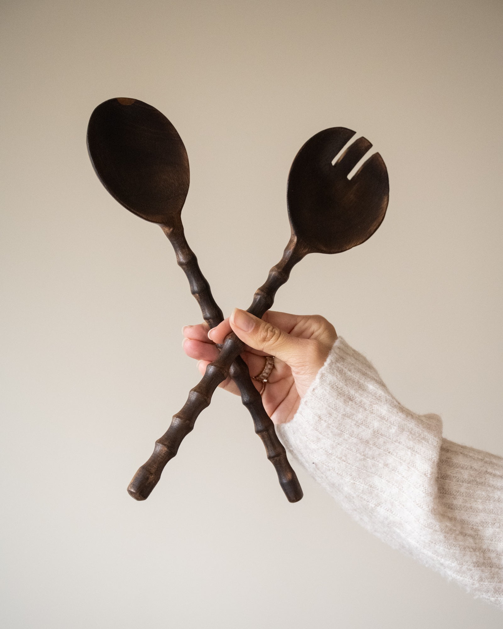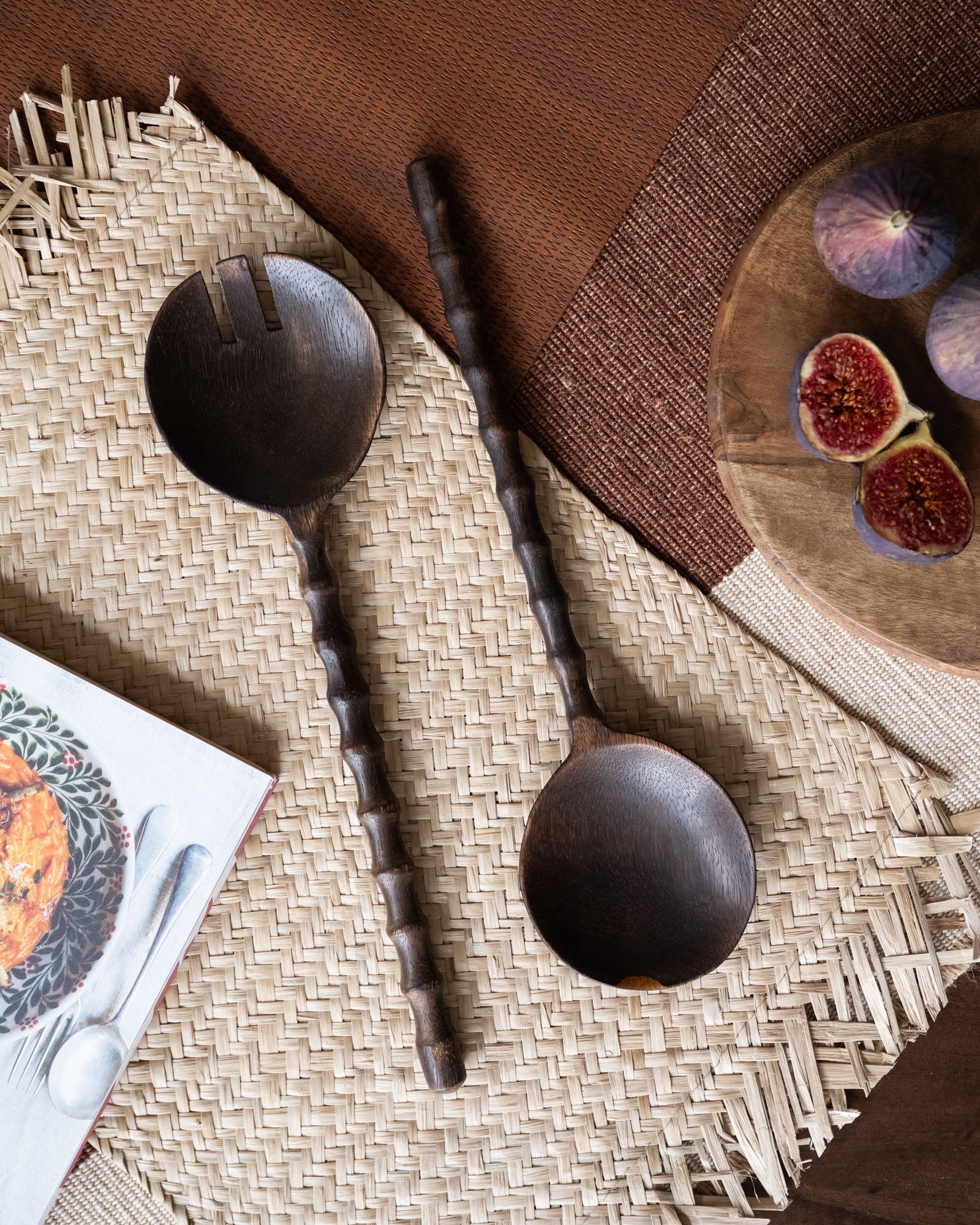 Die Zion Salatbestecke sind eine stilvolle Bereicherung für jeden Esstisch. Ihr zeitloses Design und die komfortable Griffigkeit machen sie ideal zum Servieren frischer Salate. Jedes Stück ist handgefertigt und mit viel Liebe zum Detail gestaltet – ein Unikat. Perfekt für den täglichen Gebrauch oder ein ungezwungenes Abendessen mit Gästen.