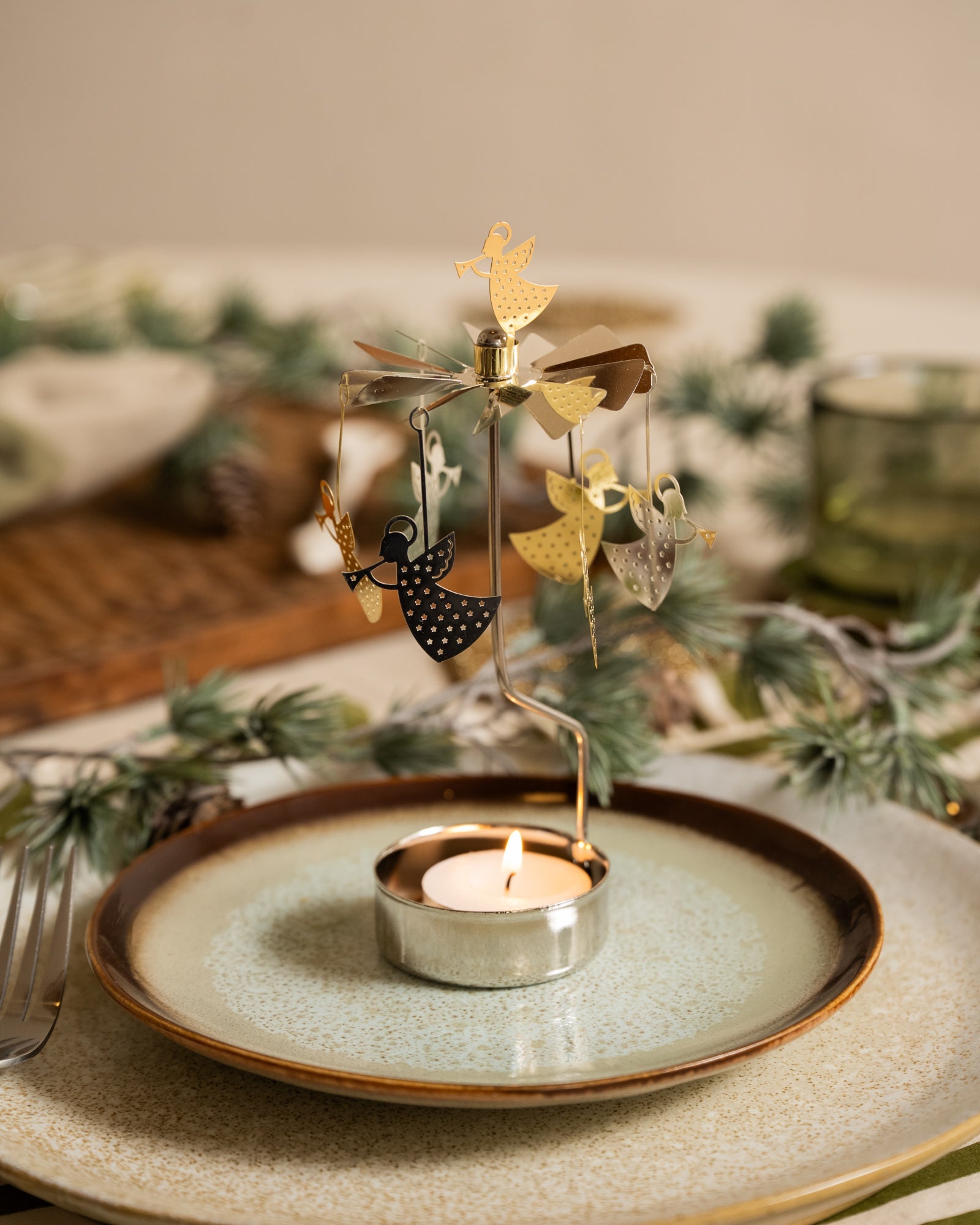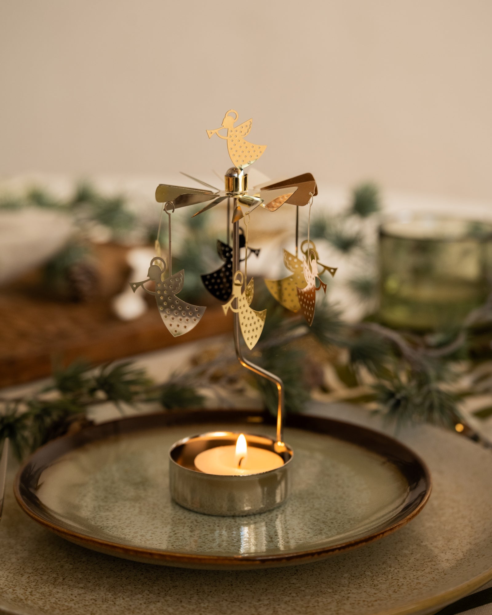 Lassen Sie sich vom drehbaren Teelichthalter-Engel verzaubern. Sobald Sie die Kerze anzünden, drehen sich die Engel sanft im warmen Licht. Das dezente Leuchten und das elegante Design bringen im Nu eine nostalgische Weihnachtsstimmung in Ihr Zuhause. Perfekt für den Esstisch, die Fensterbank oder als kleines Geschenk. Ein klassisches Weihnachtsaccessoire, das nie aus der Mode kommt!