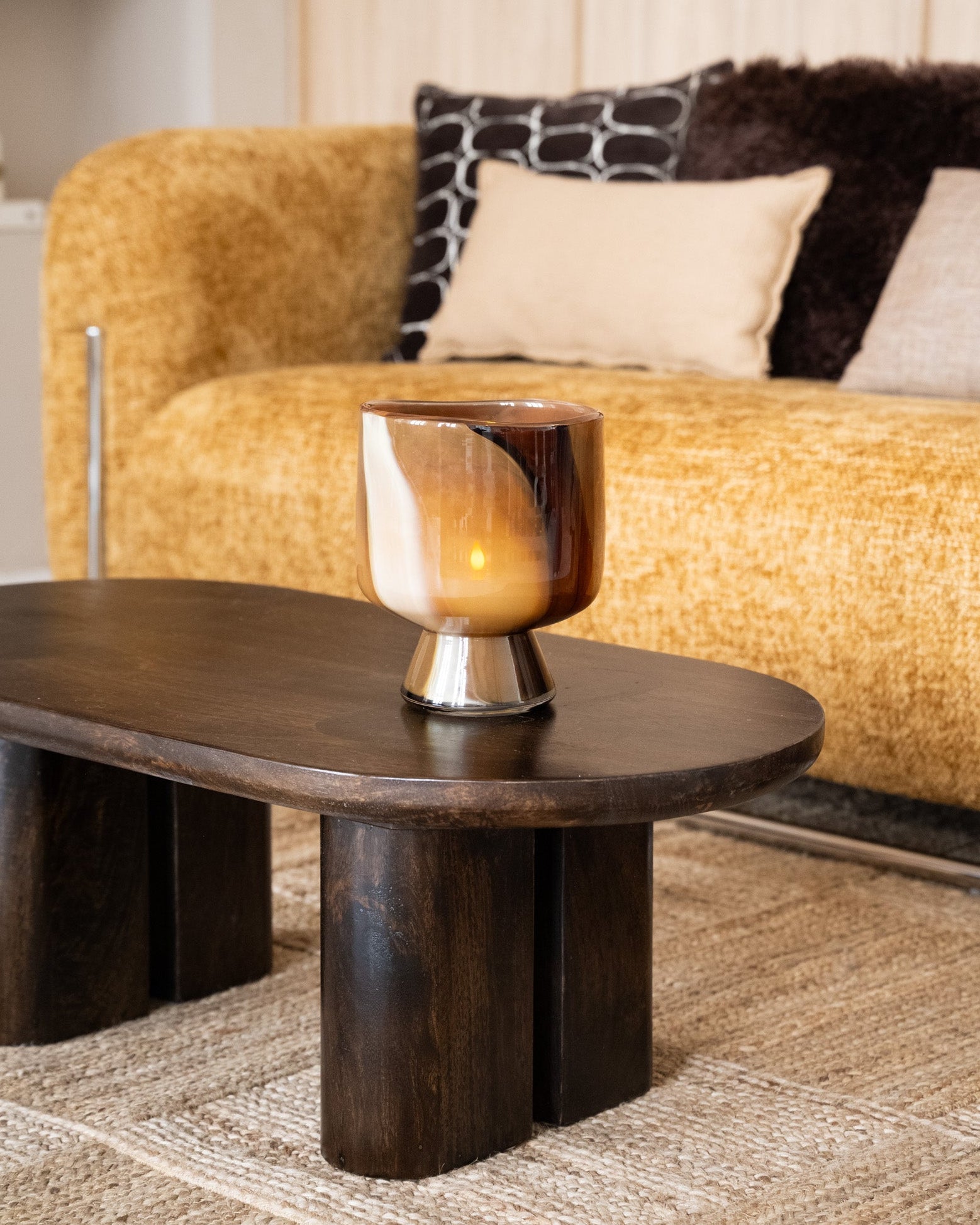 Bringen Sie mit dem Camou Teelichthalter dezente Eleganz in Ihr Zuhause. Das warme, erdfarbene Glas und das raffinierte Camouflage-Design erzeugen ein sanftes, stimmungsvolles Lichtspiel, sobald Sie ein Teelicht hineinstellen. Dieser stilvolle Halter passt perfekt auf den Esstisch, die Fensterbank oder als dekorativer Akzent auf einem Sideboard. Ein zeitloser Blickfang, der jedem Raum Wärme und Charakter verleiht.