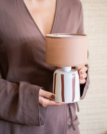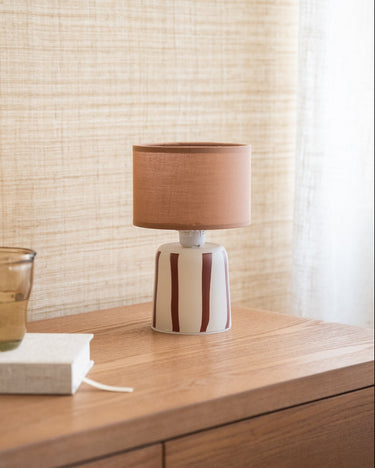 Die Tischlampe Lily Brown ist die perfekte Tischlampe für alle, die eine gemütliche Atmosphäre mit einem verspielten Touch lieben. Die braunen Streifen verleihen ihm Charakter, während das warme Licht sofort für Gemütlichkeit sorgt. Egal, ob Sie in Ihrer Lieblingsecke ein Buch lesen, sie als Schreibtischlampe oder Nachtlicht verwenden – Lily bringt Licht und Stil in jede Ecke.