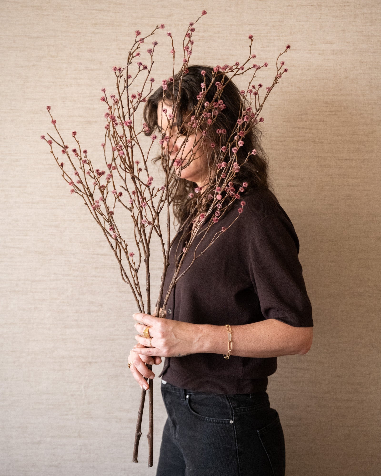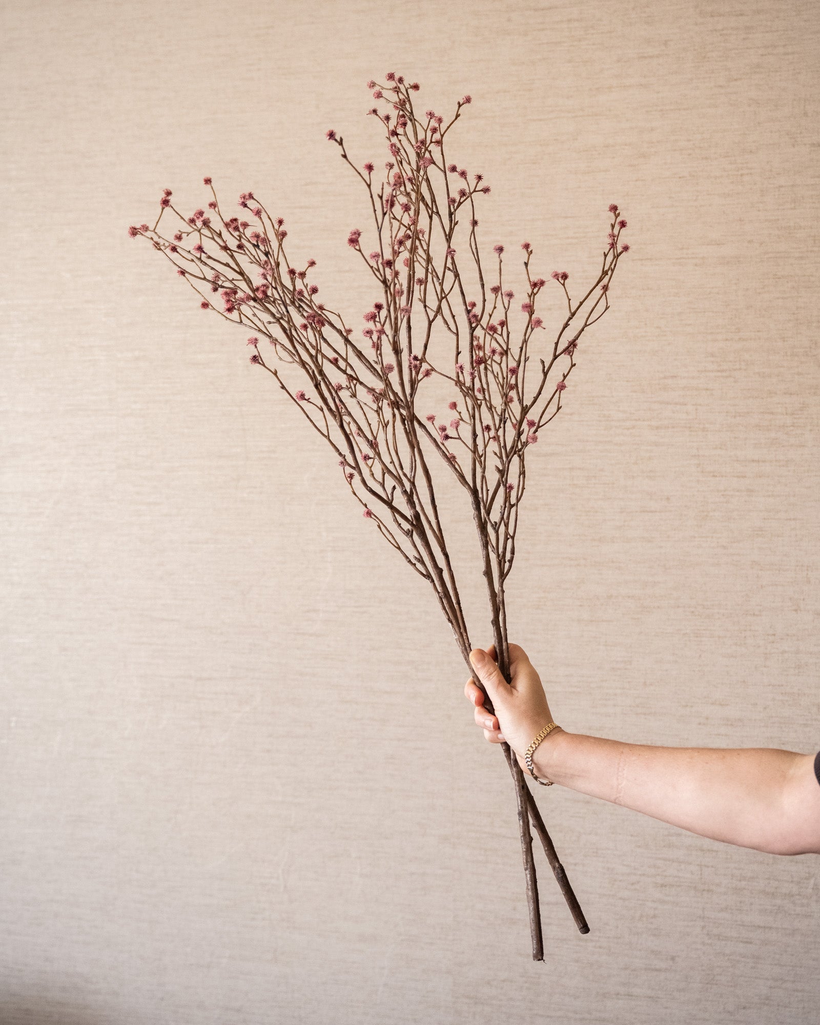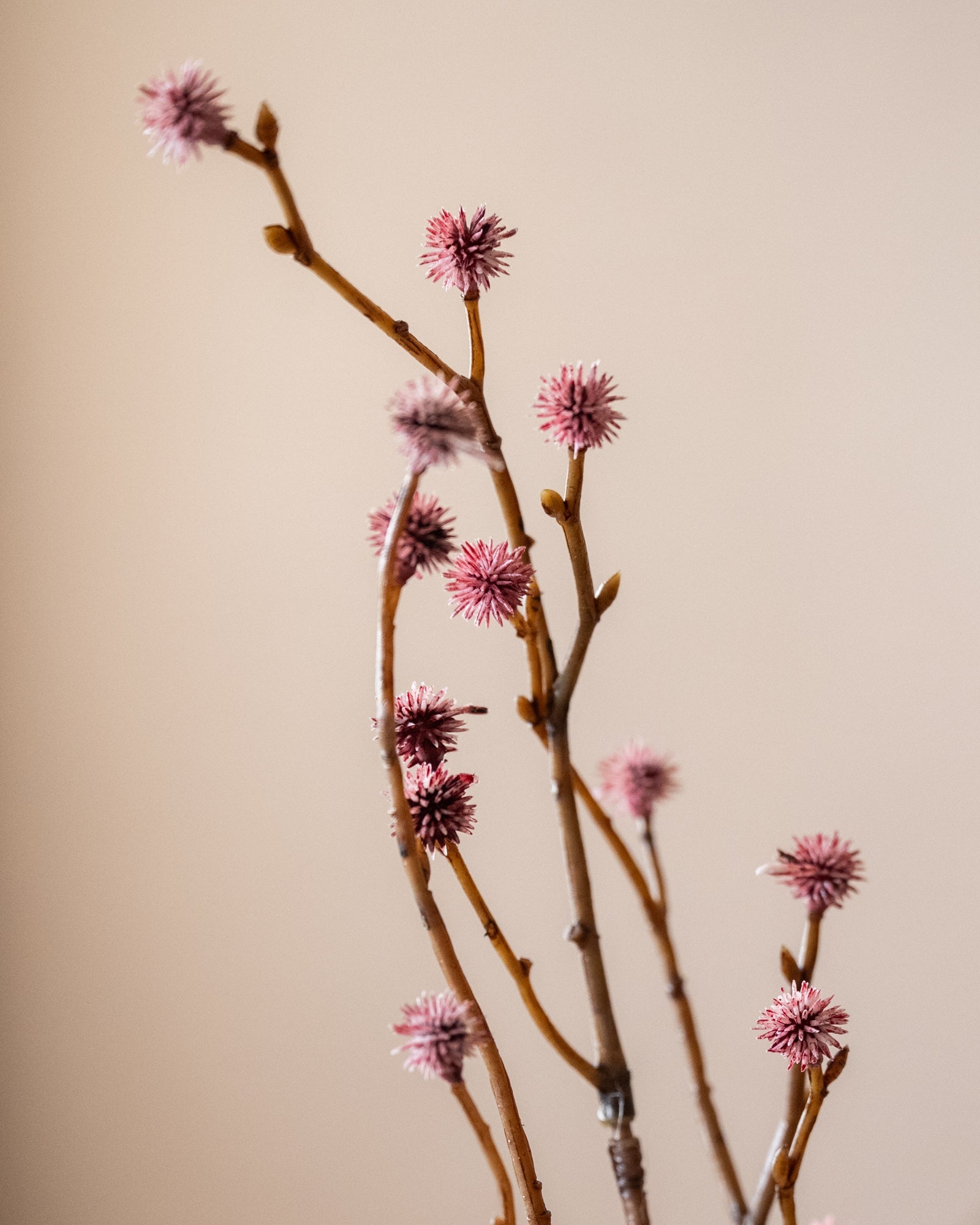 Lassen Sie Ihr Interieur mit diesem wunderschönen Seidenzweig voller verspielter rosa Knospen erstrahlen. Die zarten Details und die dezente Farbe machen es zu einer stimmungsvollen Ergänzung für jede Vase, sowohl solo als auch im Strauß. Dank seiner naturgetreuen Optik können Sie das ganze Jahr über einen Hauch natürlicher Eleganz genießen!