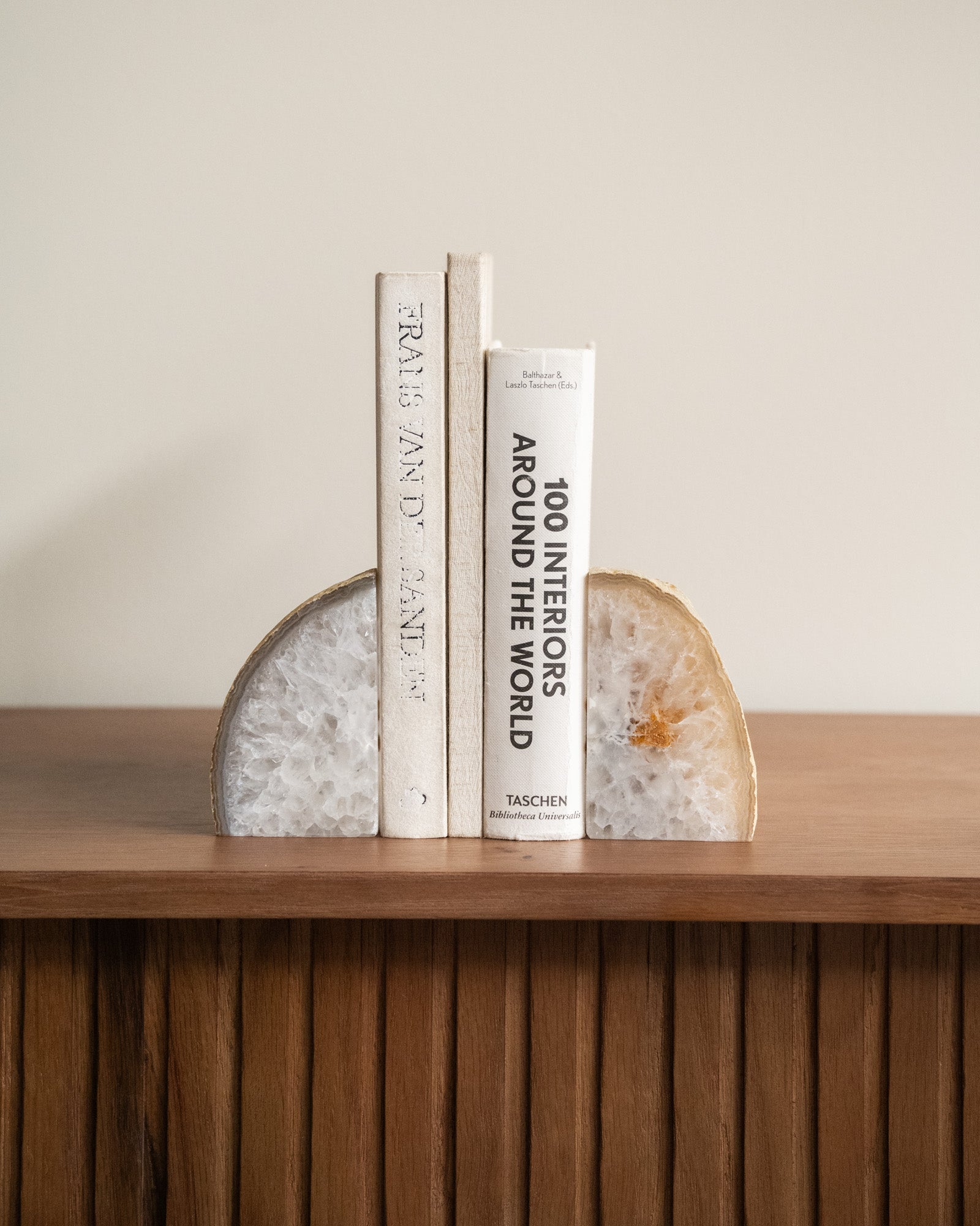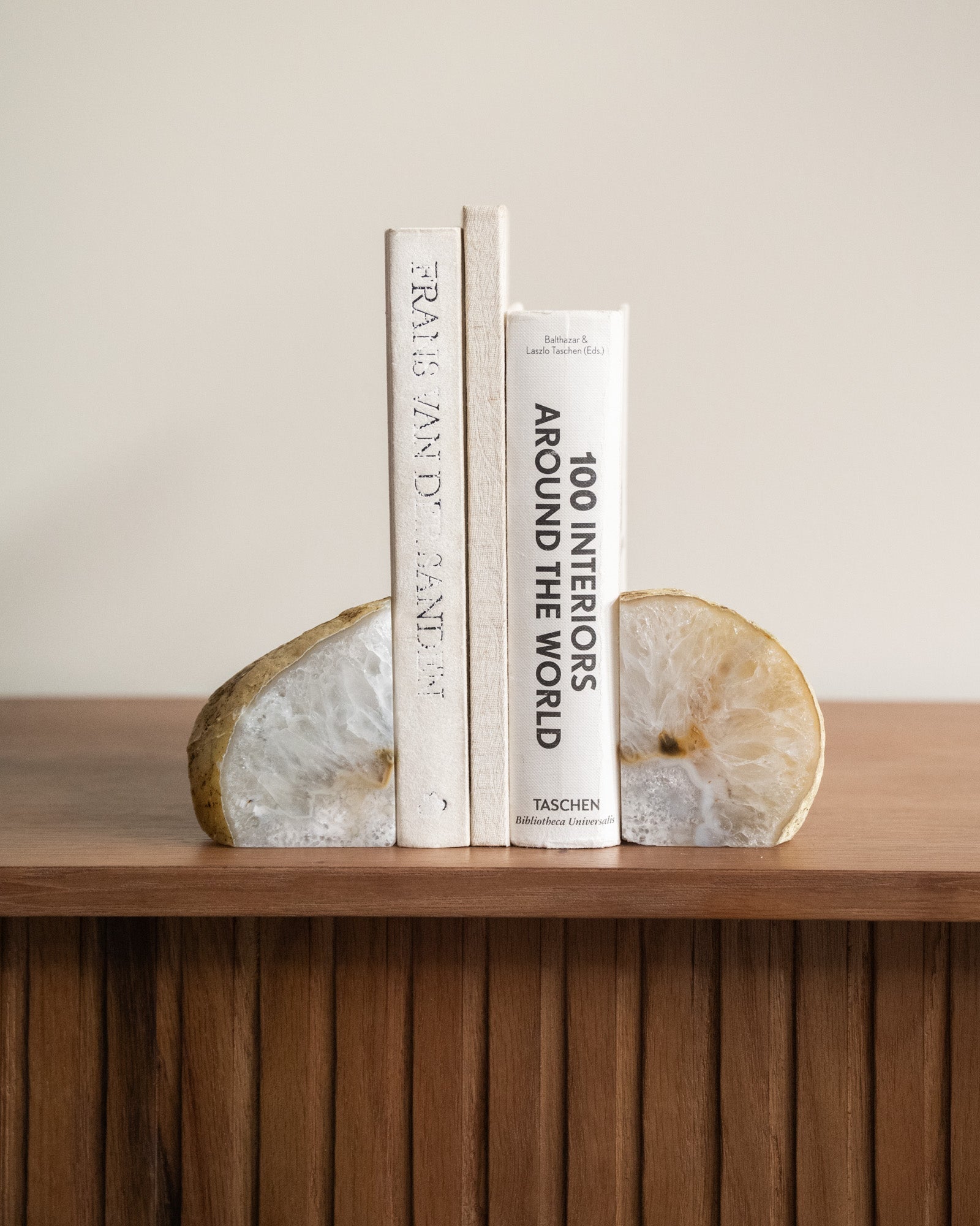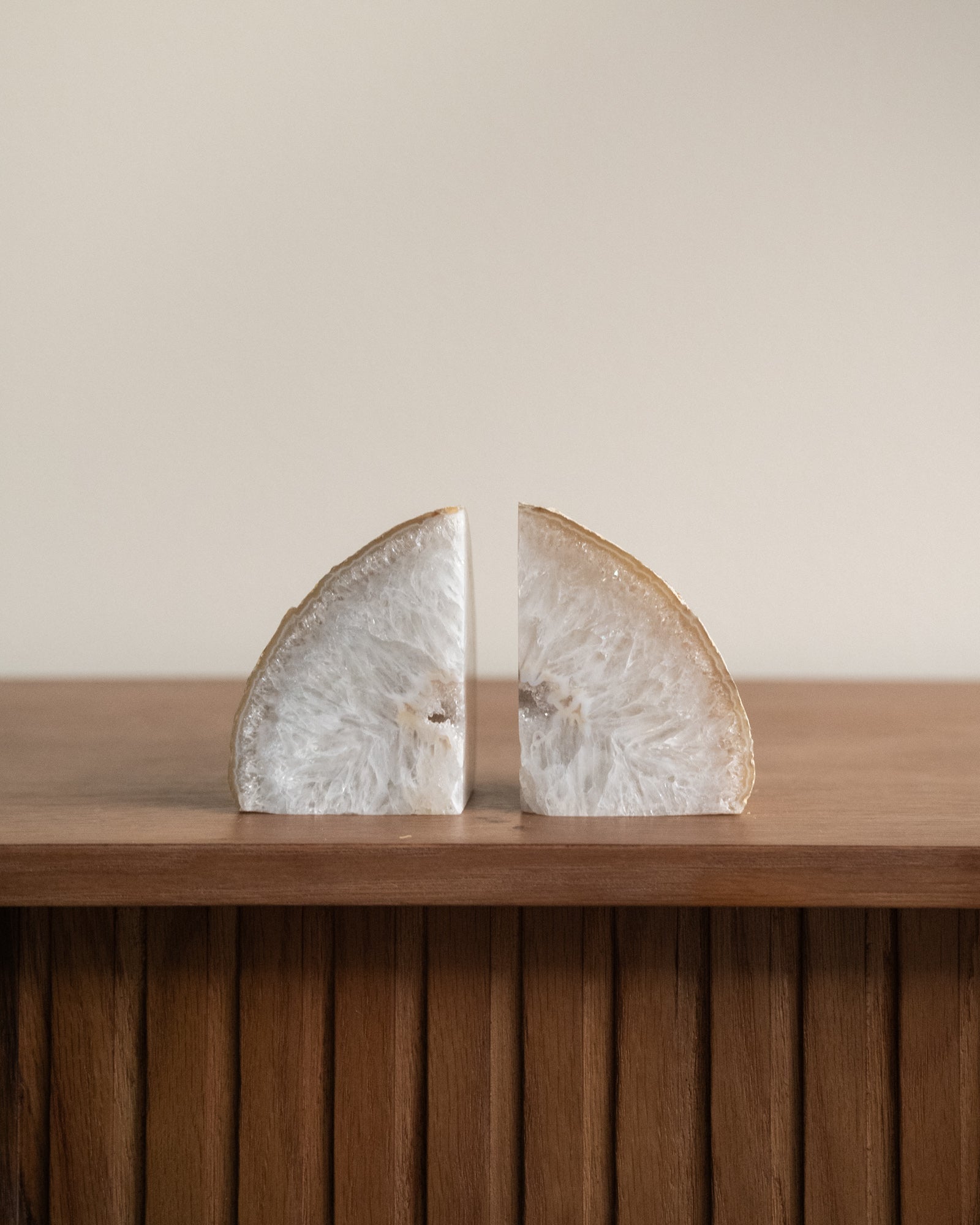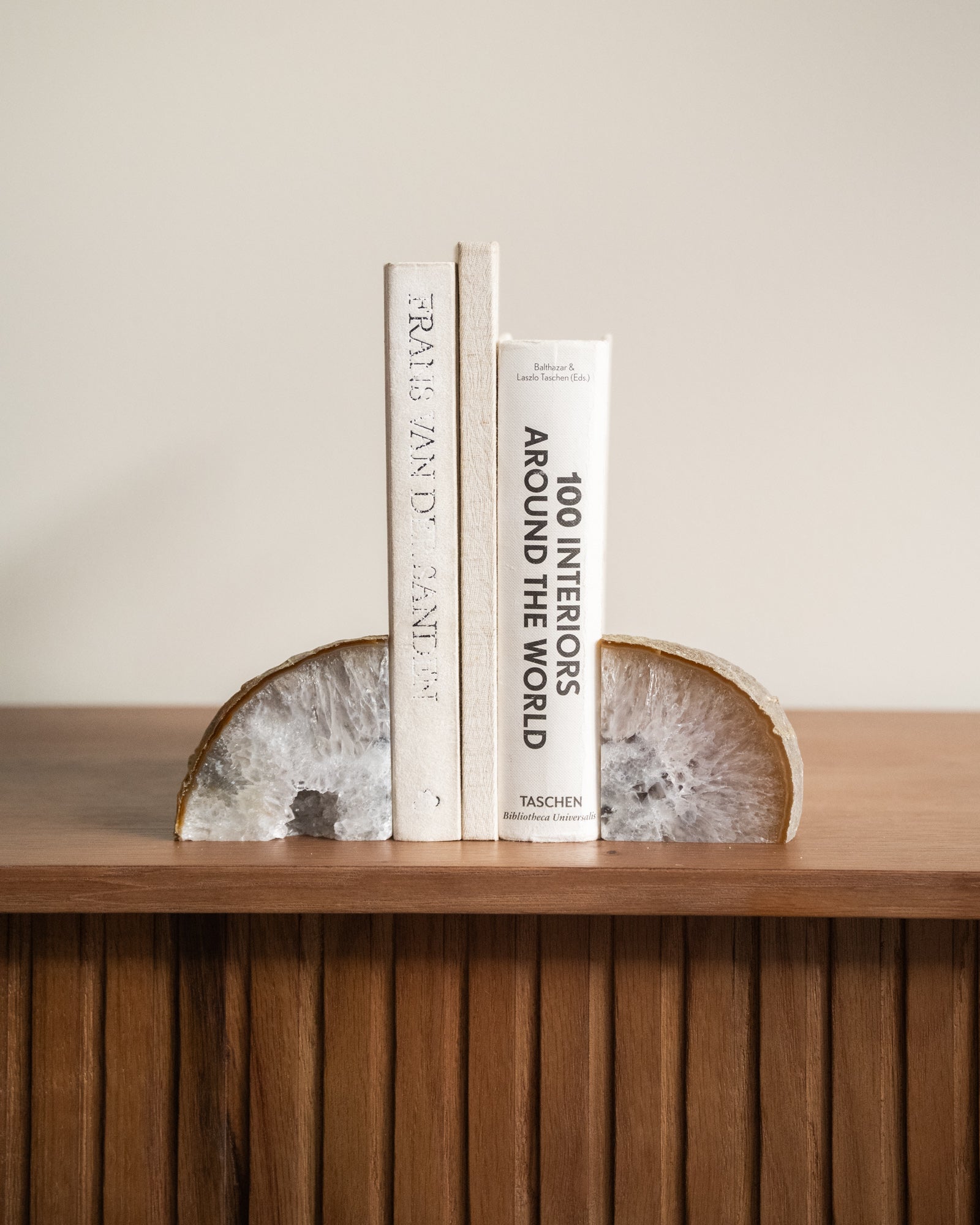 Diese einzigartigen Buchstützen bestehen aus natürlichem Achat. Achat hat eine schützende und erdende Wirkung. Da es sich um einen Naturstein handelt, ist jedes Stück ein Unikat.