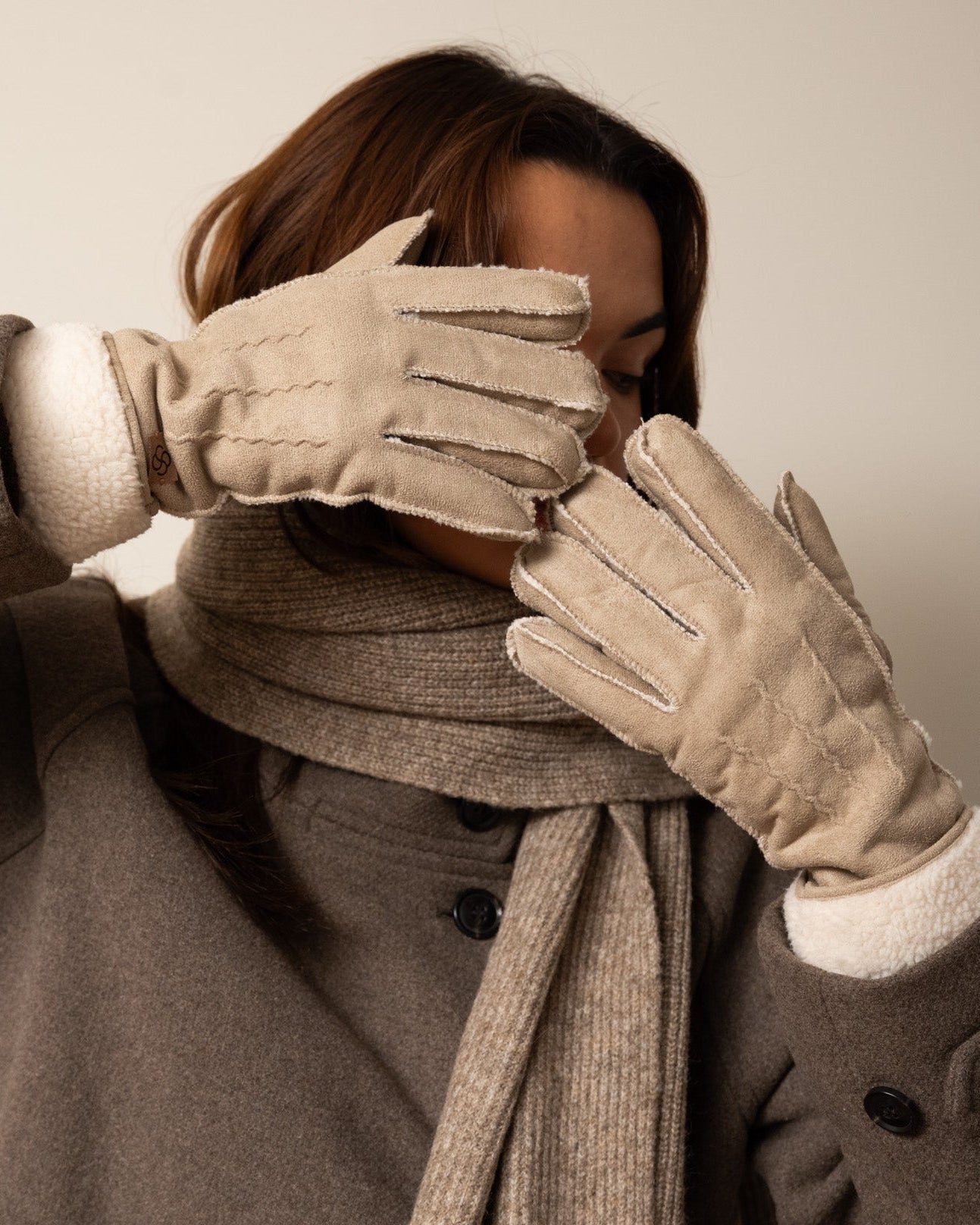 Warme Handschuhe aus weichem Material mit hochgeschlagenem Fleece-Bündchen.