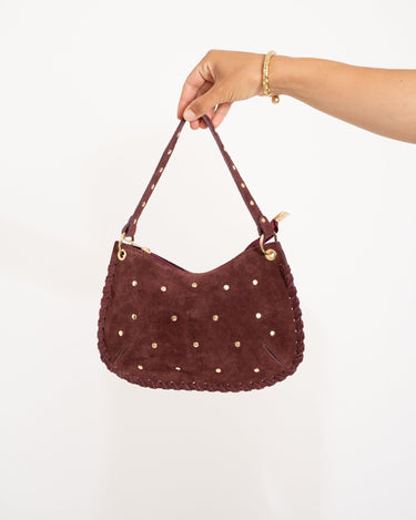 Die Casey ist eine Handtasche aus Wildleder. Sie verfügt über ein großes Fach mit einem verschließbaren Einschubfach im Inneren und einem verstellbaren Riemen.