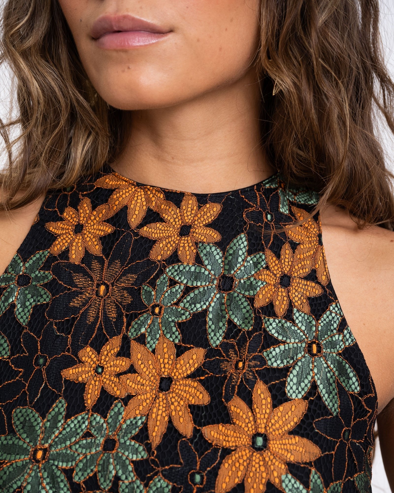 TILTIL Ai-vi Crop Top Schwarz Spitze Orange Grün