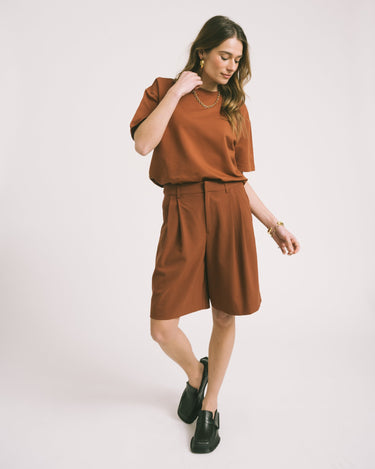 Wie schön sind diese Bermudashorts in einem warmen Braunton! Die perfekte Mischung aus Stil und Komfort. Ein echtes Must-Have für ein müheloses, trendiges Outfit. 🤎
