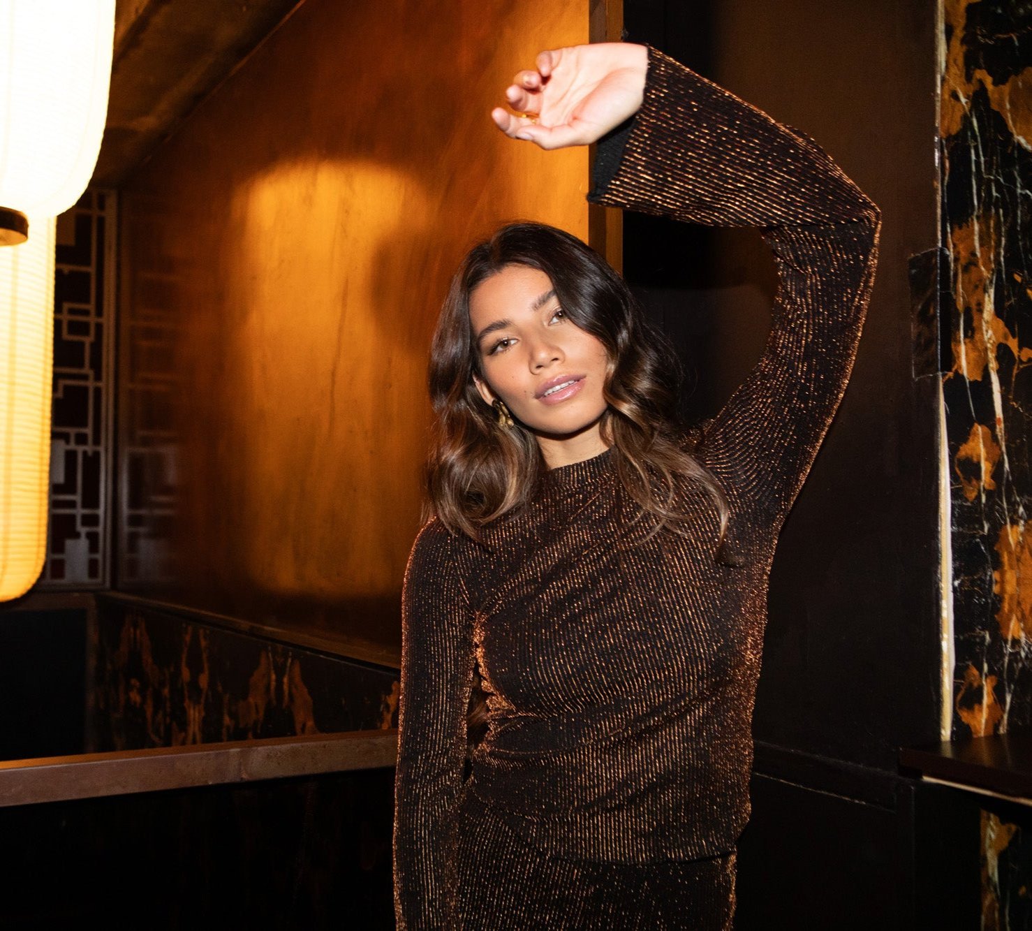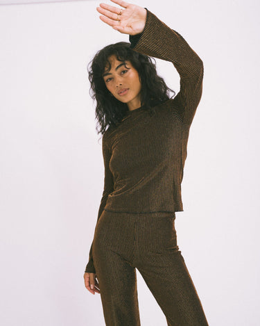 TILTIL Charlie Langarmshirt Glitzer Bronze Schwarz