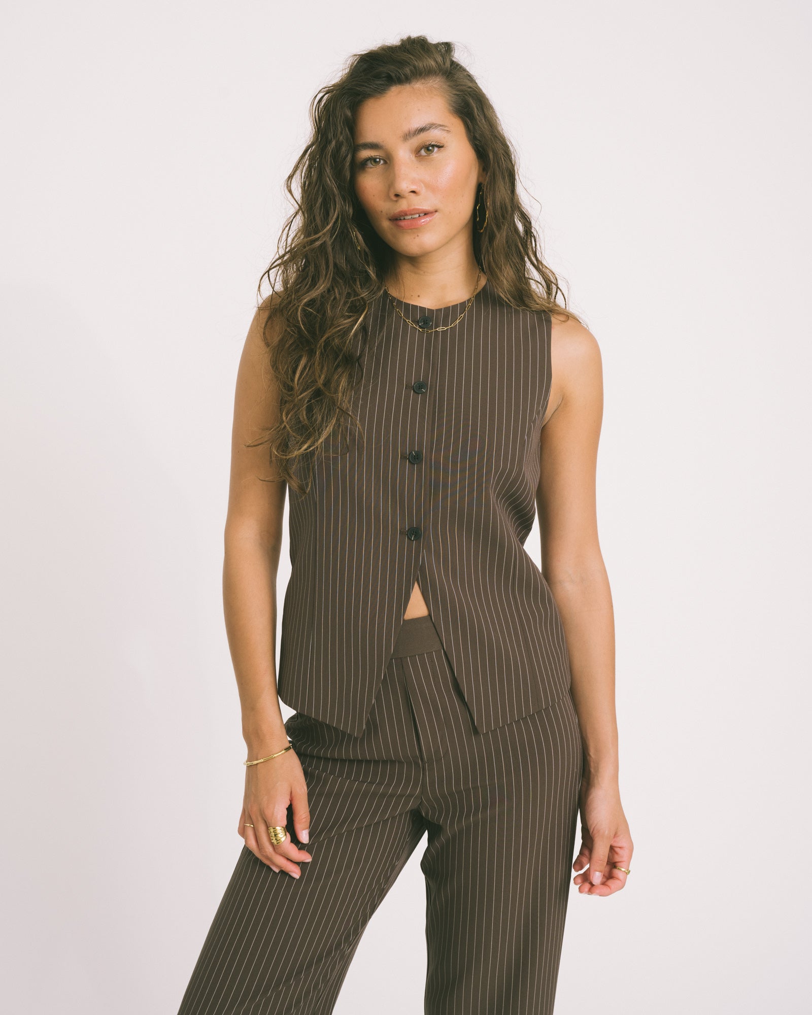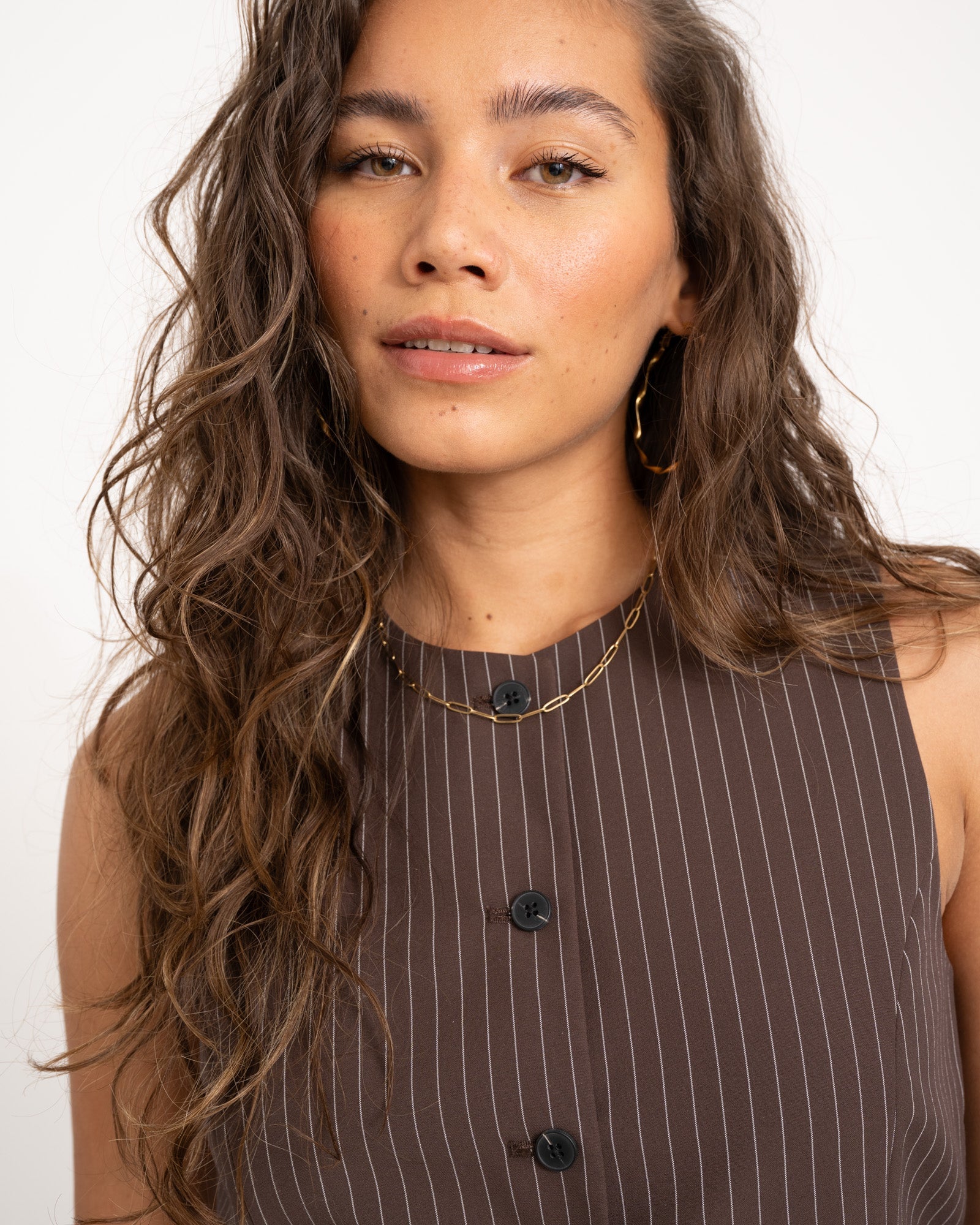TILTIL Dana Gilet Brauner Nadelstreifen