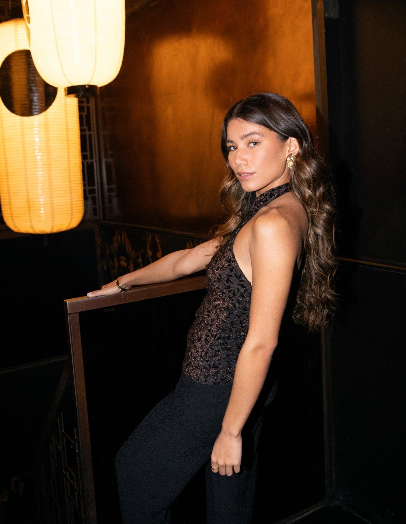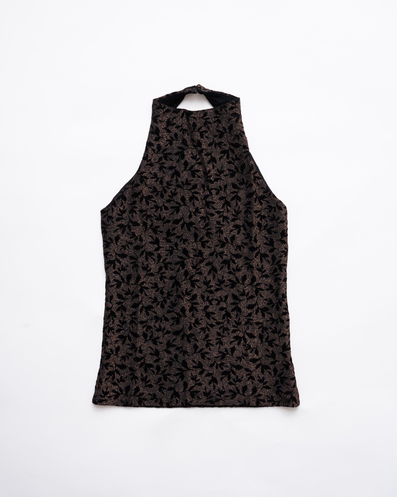 TILTIL Emmy Neckholder Top Rostfarbener Glitzer Druck