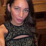 | Details | Schwarz mit goldenem Panther-Print, Rundhalsausschnitt, Ausschnittdetail |