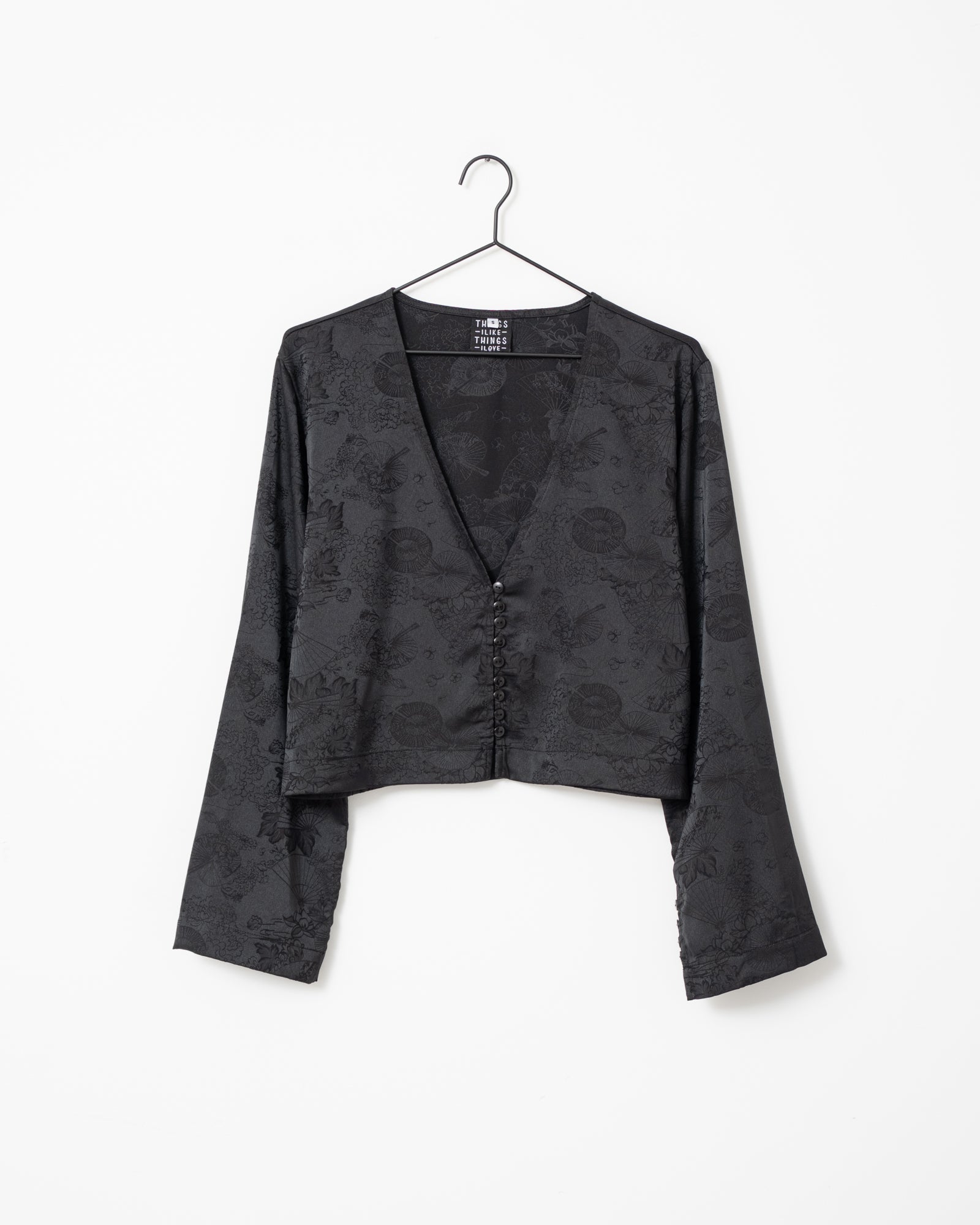 | Details | Tiefer V-Ausschnitt, Langärmlige Ärmel mit Bündchen, Knopfverschluss |