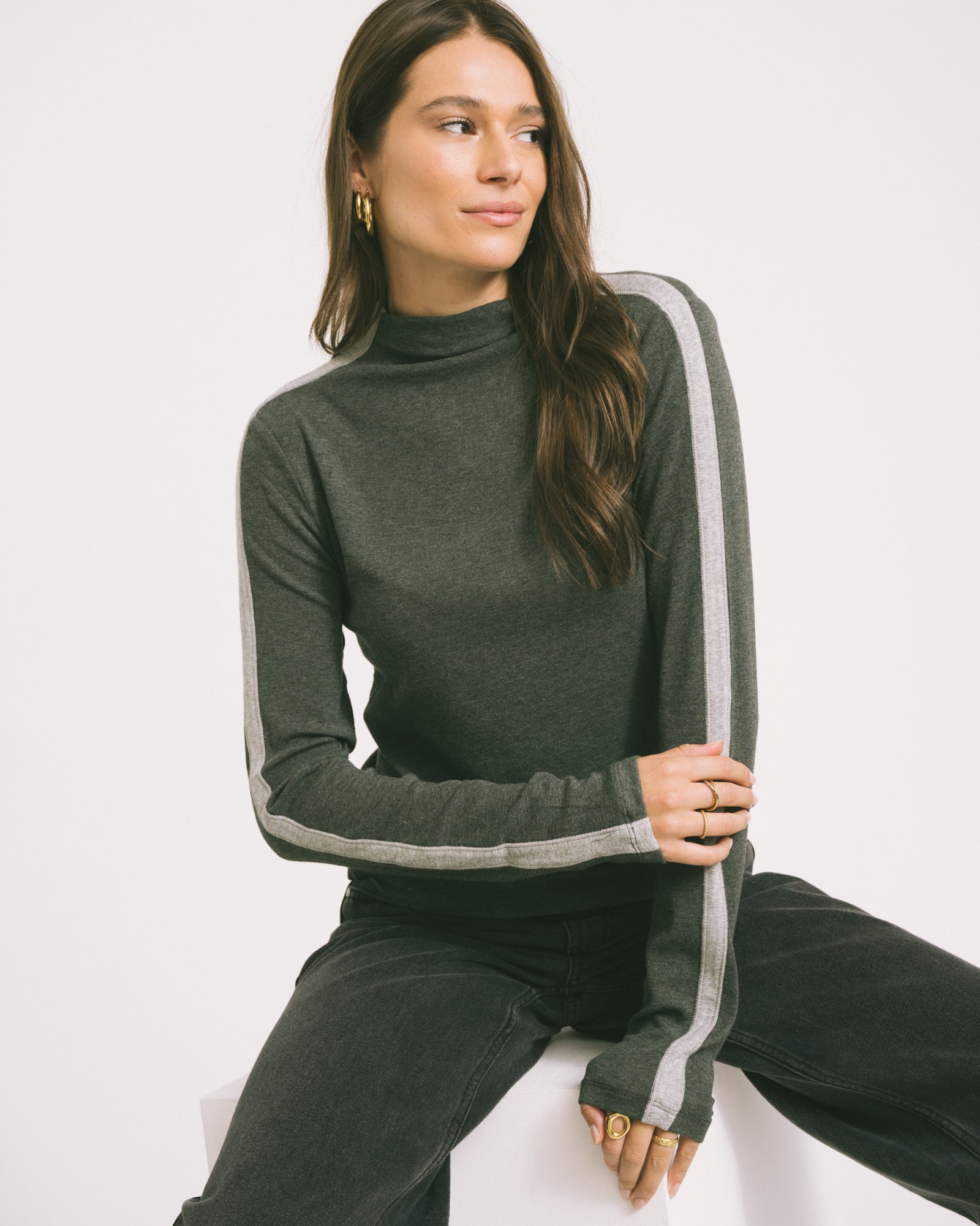 Ein weiches Langarmshirt mit Stretch und einem weiß gestreiften Detail.