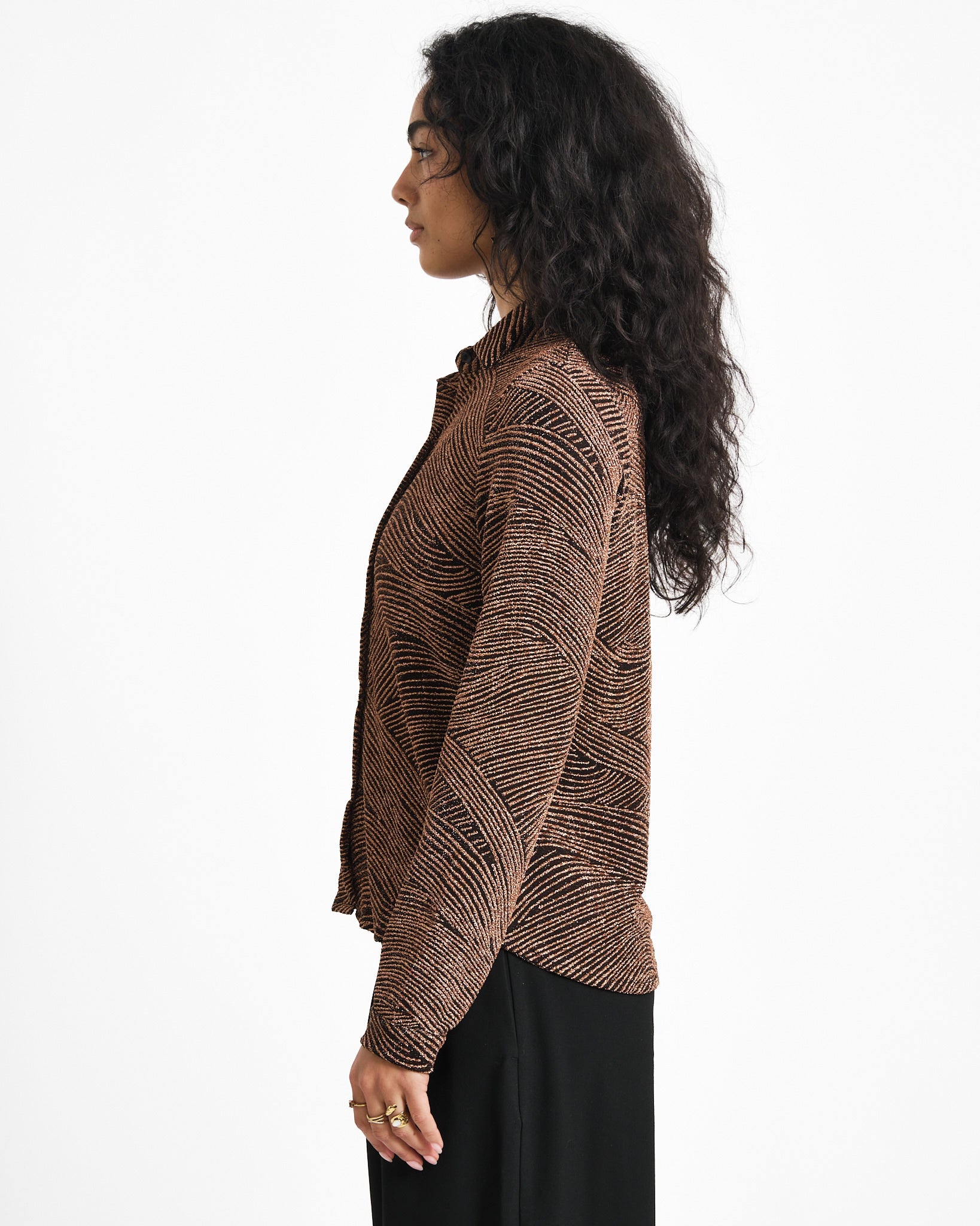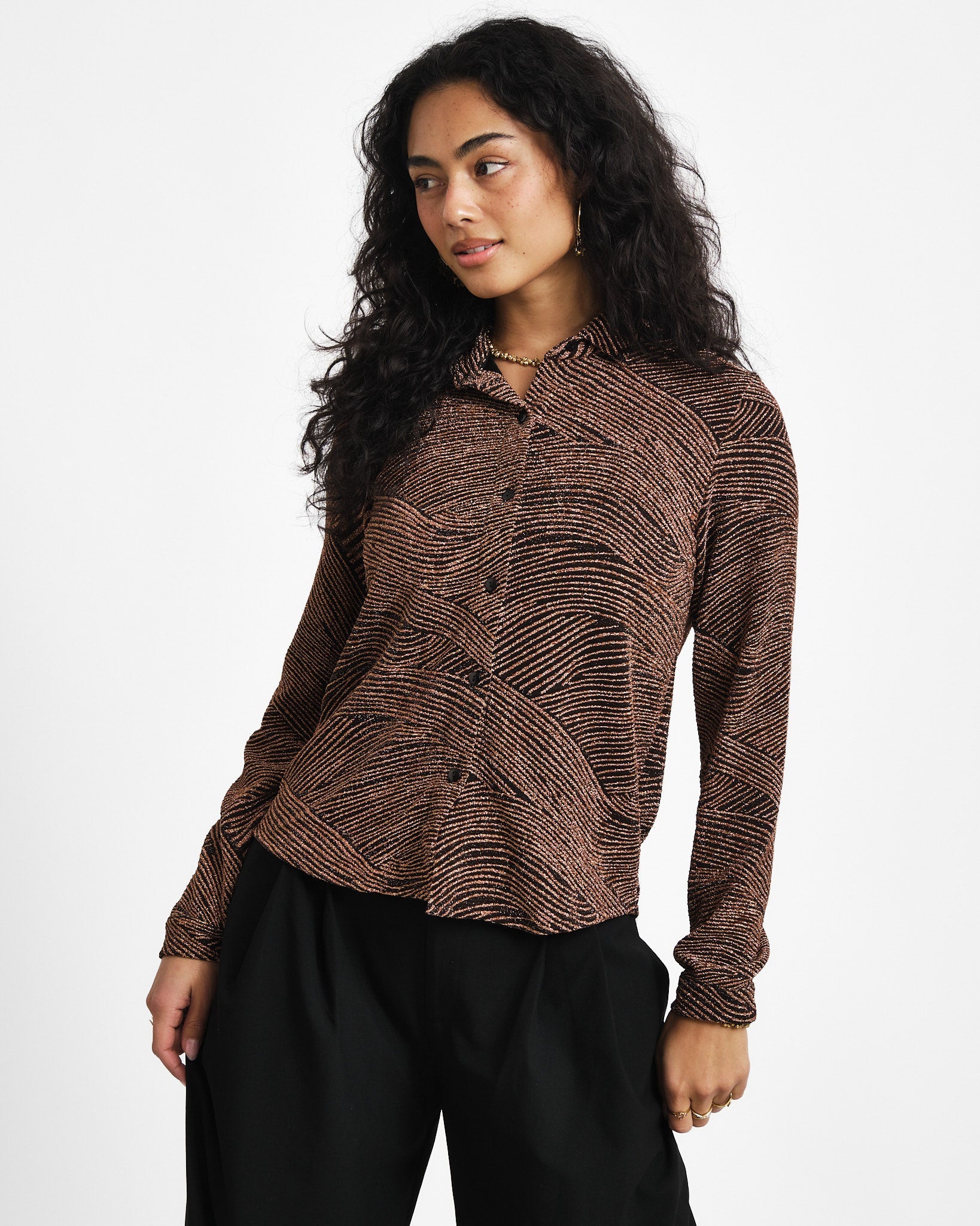 Die Merel Bluse von TILTIL ist dein Lieblingstop für jeden vergnügten Abend. Mit ihrem schimmernden Finish strahlst du mühelos. Egal ob Mädelsabend, festliches Abendessen oder einfach nur, um zu glänzen – diese Bluse ist immer die richtige Wahl.