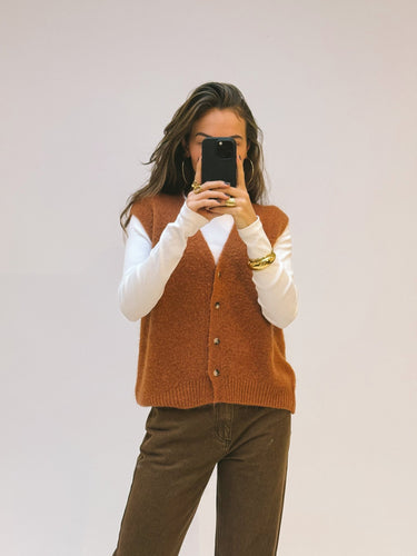 Eine weiche Strickjacke aus Wolle mit tiefem V-Ausschnitt und Knopfverschluss.