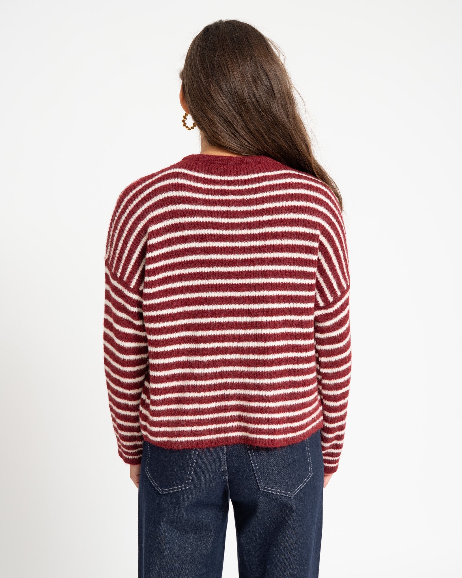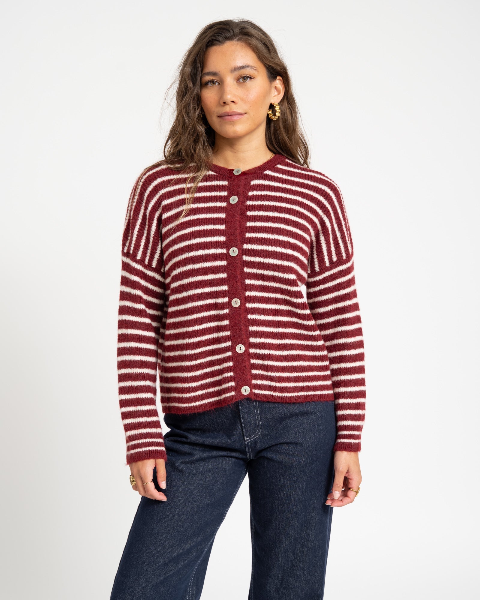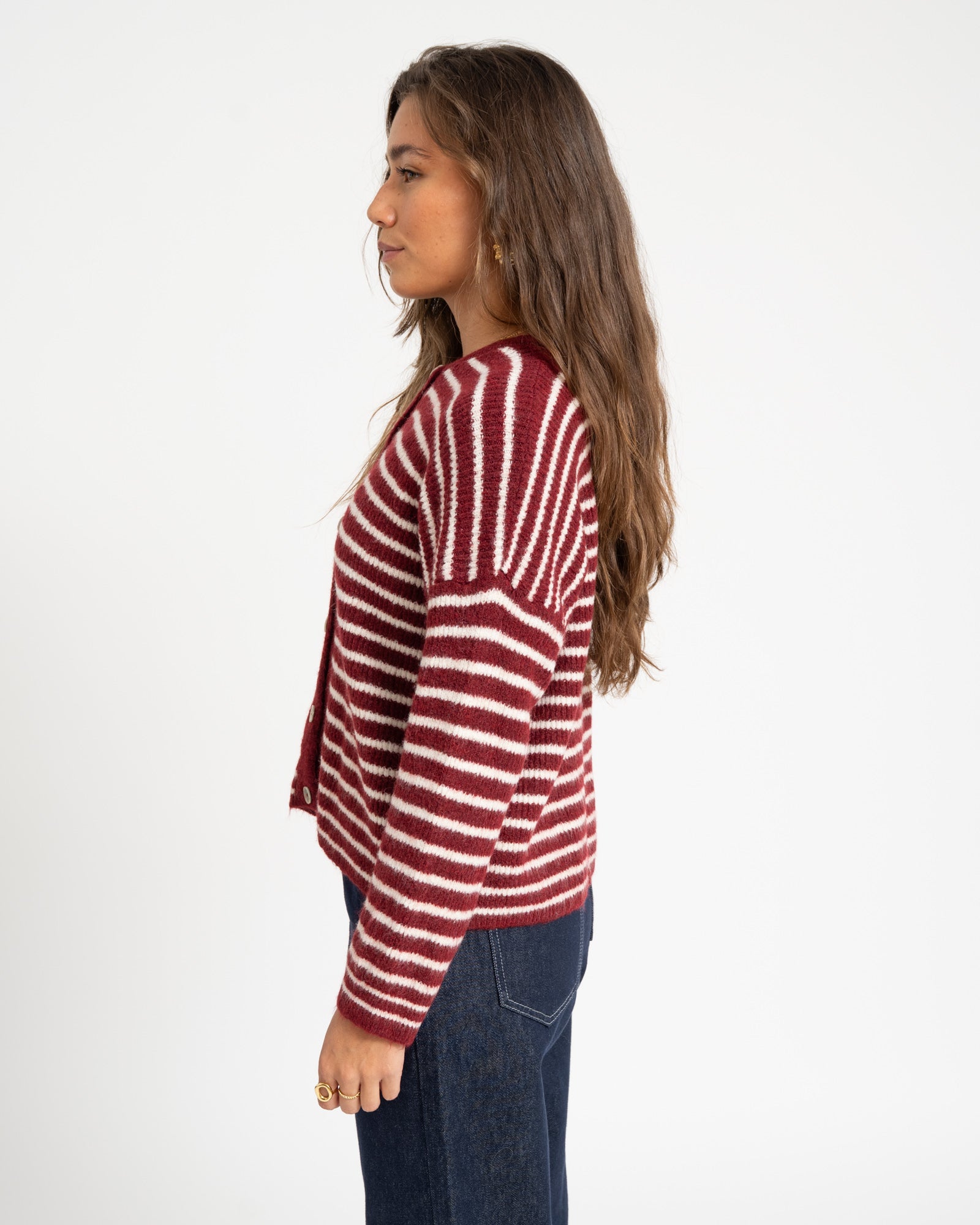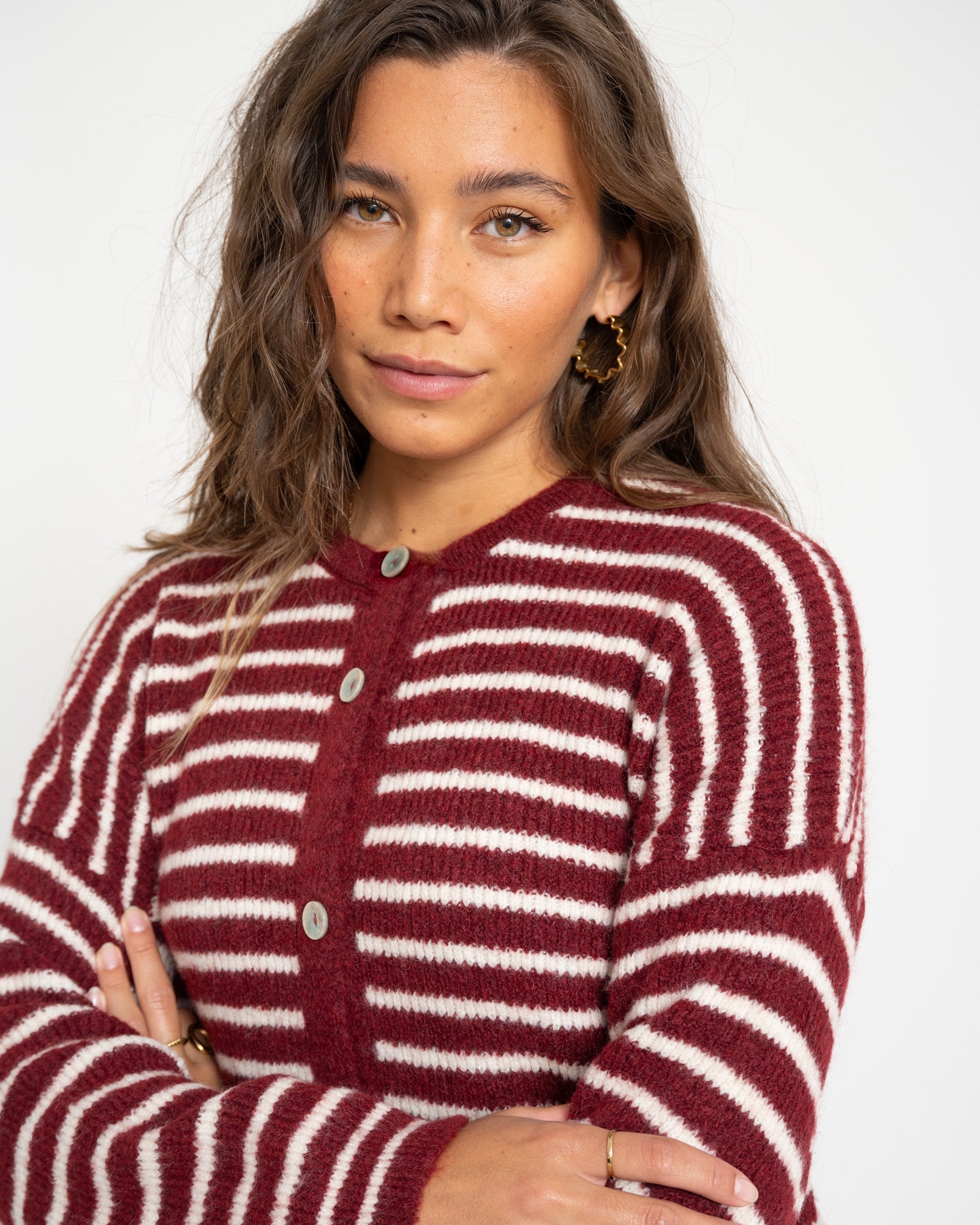 TILTIL Petra Cardigan Striped Bordeaux One Size