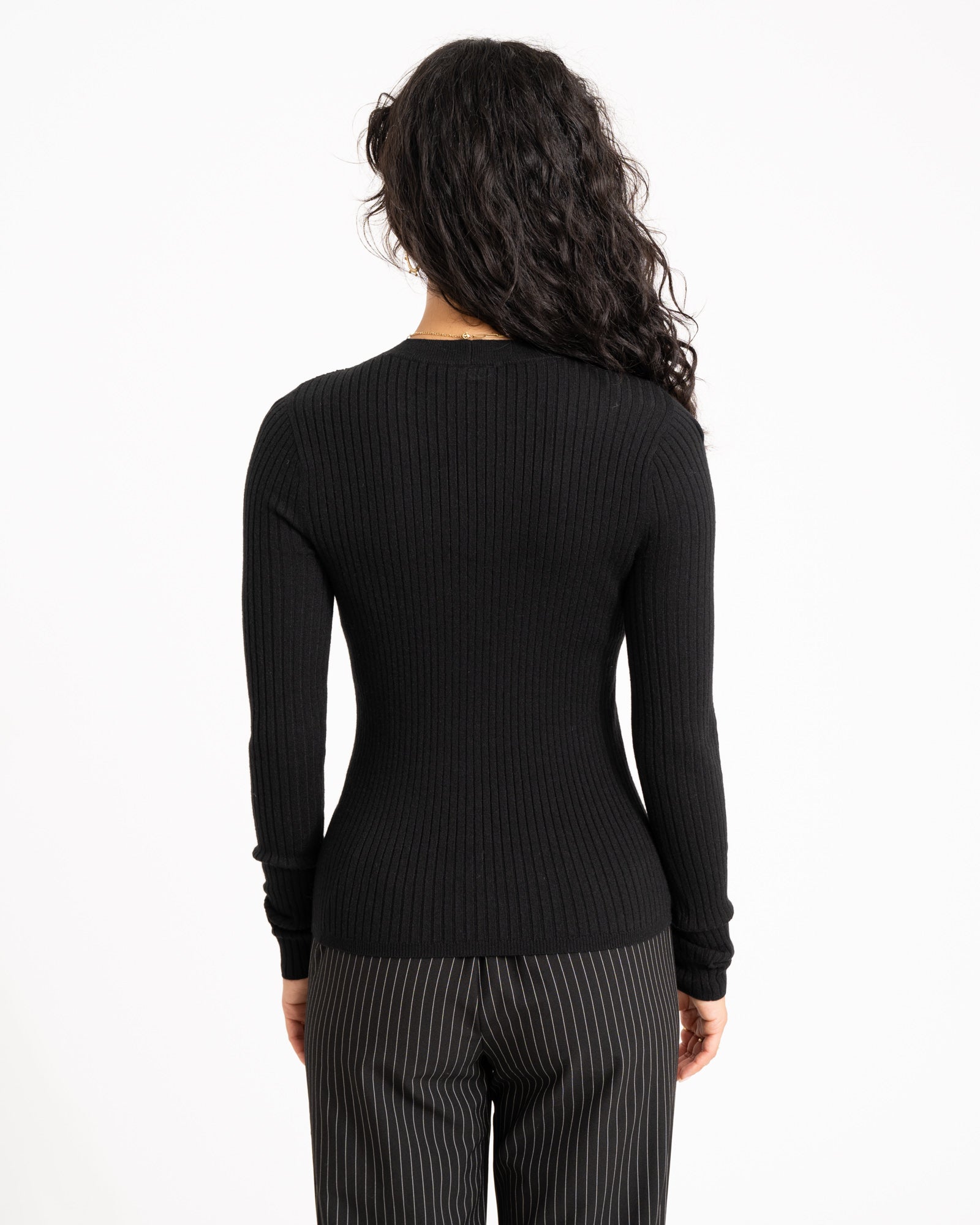 Das absolut Basic! Das Oberteil ist tailliert, dehnbar und hat ein Rippmuster.