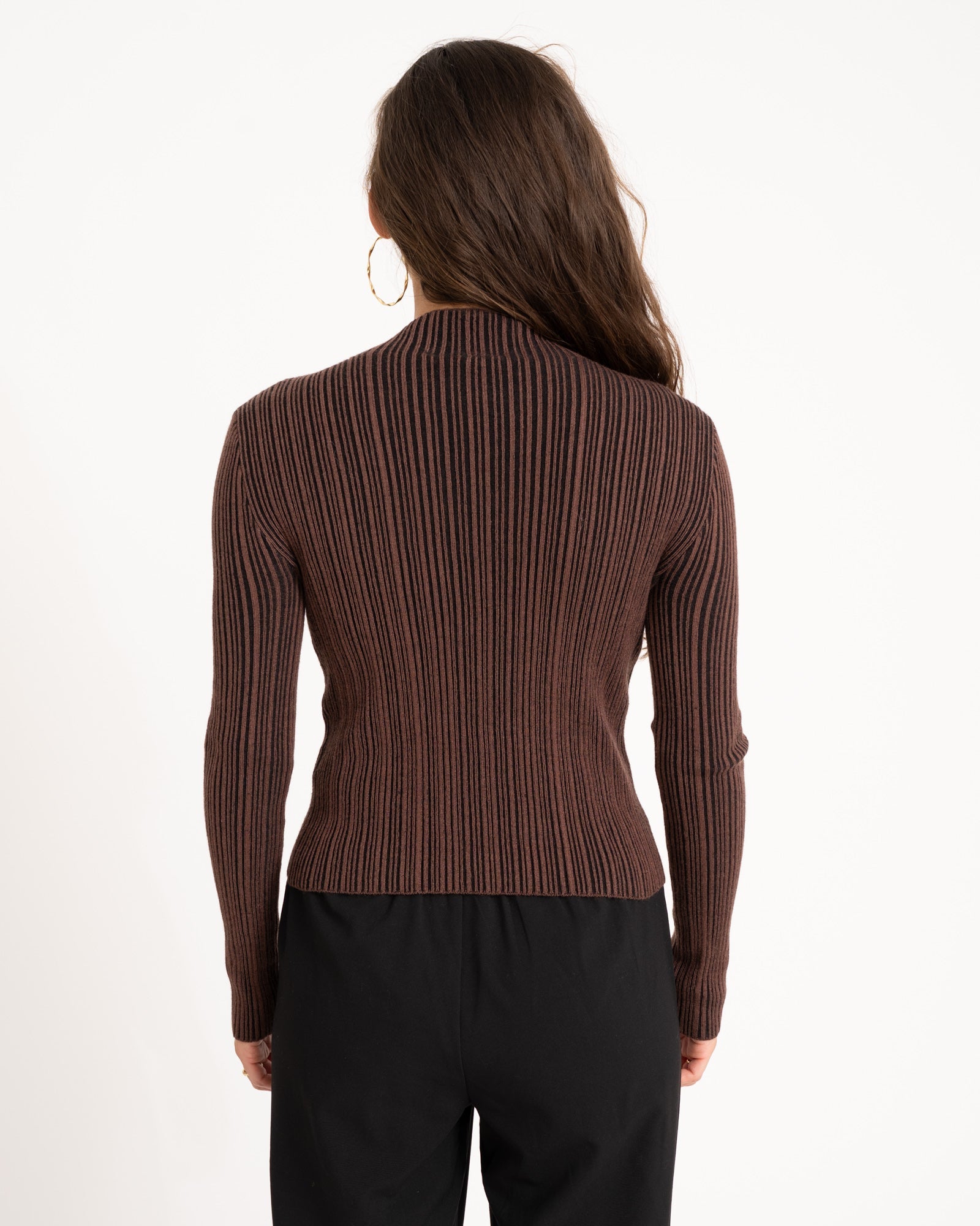 Der Rowie Contrasted Knit ist ein eng anliegender Pullover mit langen Ärmeln und hohem Kragen. Hergestellt aus weichem, geripptem Stoff, der sich Ihrer Körperbewegung anpasst. Ideal für die ersten kälteren Tage.