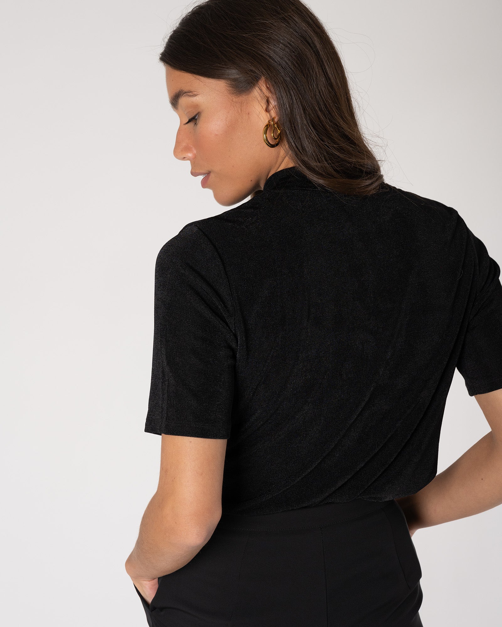 Get your sparkle on with this shimmery top! Es hat eine lockere Passform mit T-Shirt-Länge und lässt sich leicht in Hosen oder Röcke stecken.