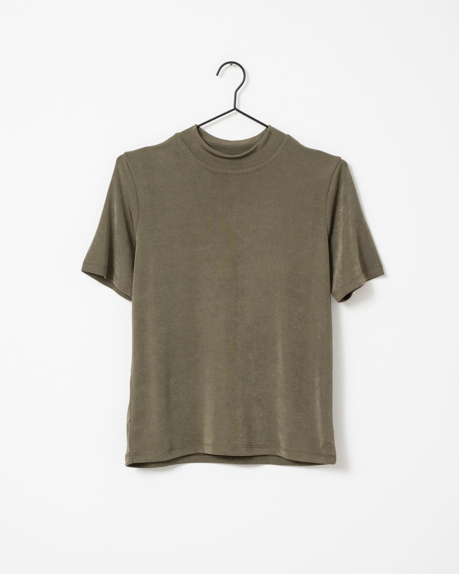 | Details | Dezenter Glanz, Hoher Rundhalsausschnitt, Kurzarm |