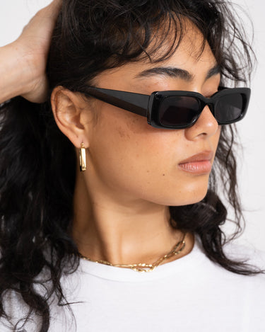 Die Sonnenbrille „Djaymie“ hat ein geradliniges und schlichtes Design mit einem schwarzen Rahmen. Auf der Innenseite ein Augenzwinkern mit dem Tiltil-Logo und natürlich wird sie mit einem weichen Etui geliefert, sodass Sie die Brille problemlos überallhin mitnehmen können!