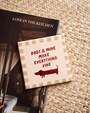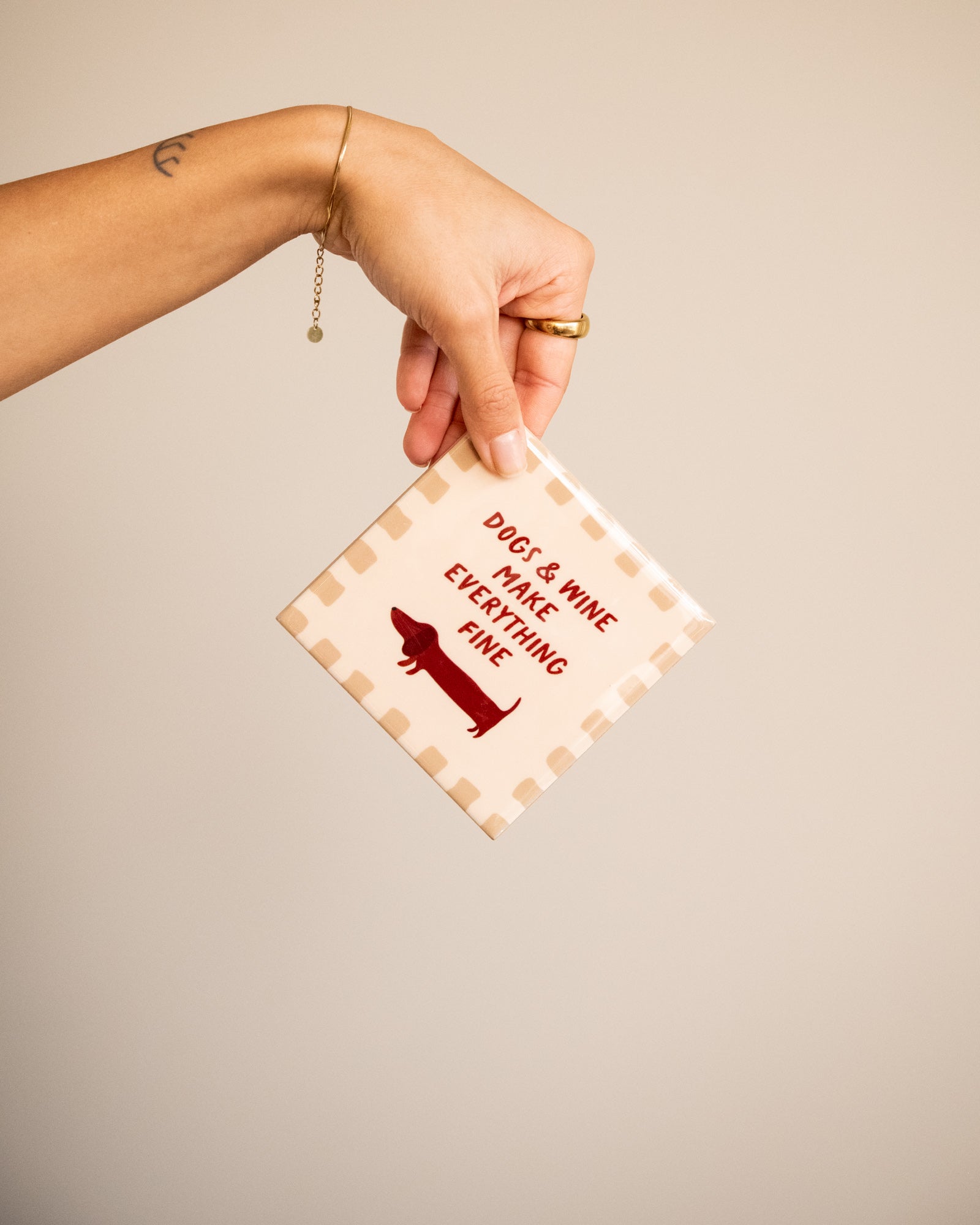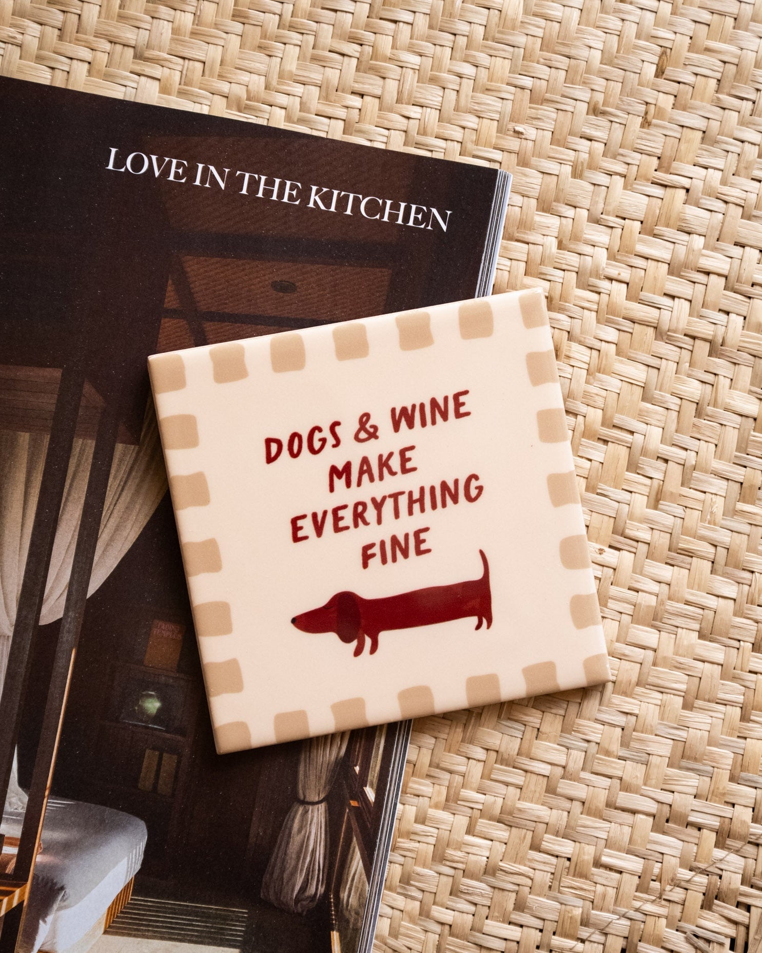 Diese fröhliche Keramikfliese ist ein Muss für jeden Hundeliebhaber mit einer Schwäche für Wein (oder umgekehrt). Entworfen von unserem TILTIL-Team, verleiht sie Ihrer Küche, Ihrem Wohnzimmer oder Ihrer Hausbar eine gemütliche Note.