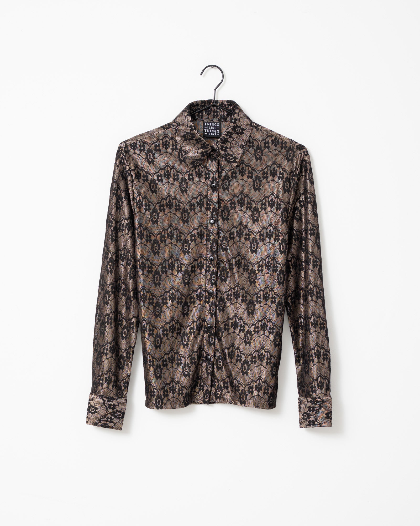 Verleihen Sie Ihrer Partygarderobe mit dieser wunderschönen Spitzenbluse einen Hauch von Glamour. Die zarte schwarze Spitze in Kombination mit einem dezenten Glanz sorgt für einen eleganten und festlichen Look, perfekt für Dinnerpartys, Feiern oder einen schicken Abend in der Stadt.