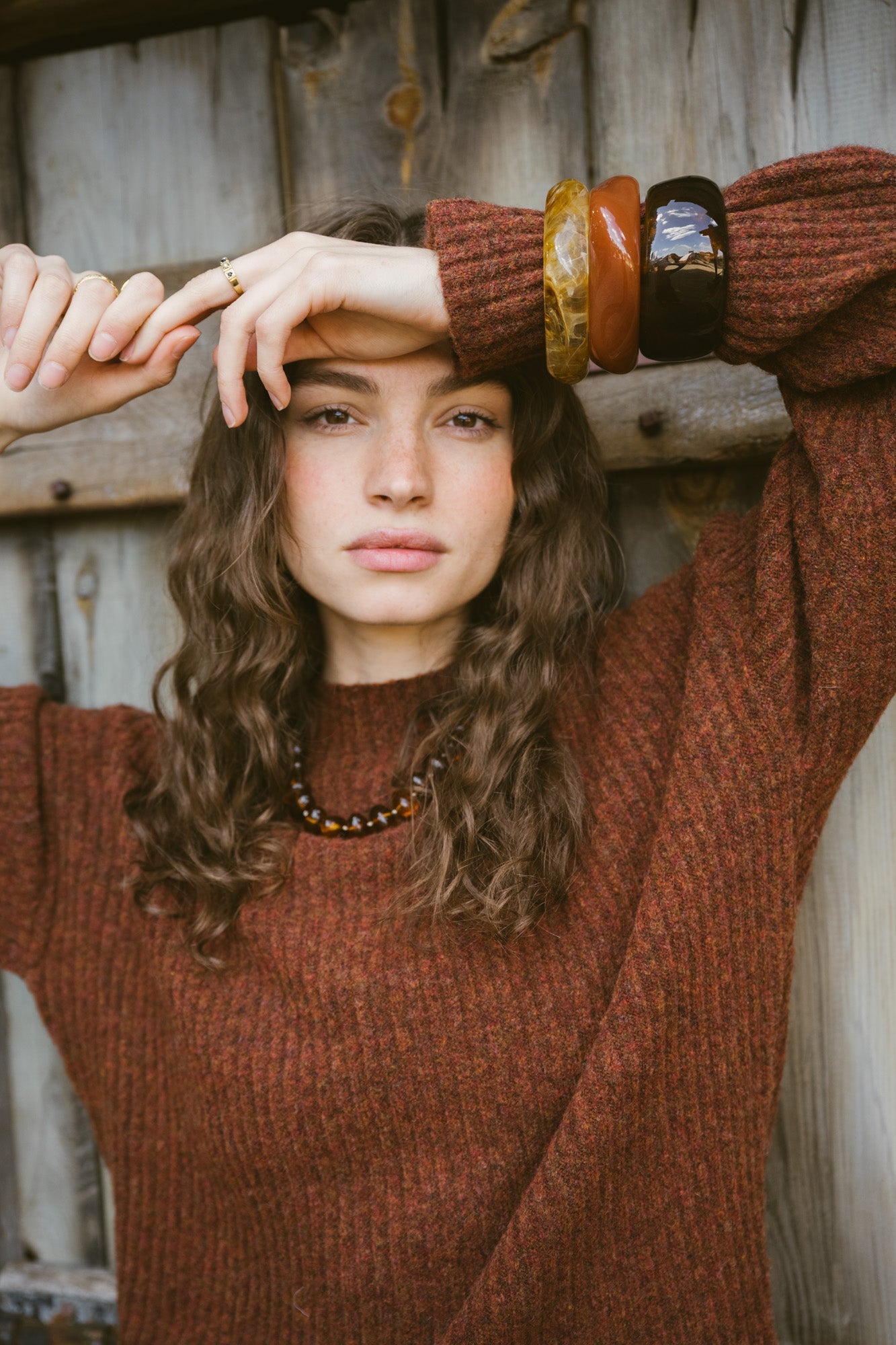 Acryl-Armreif in Sandfarbe, in organischer Form. Macht richtig Spaß, ihn zu stapeln!