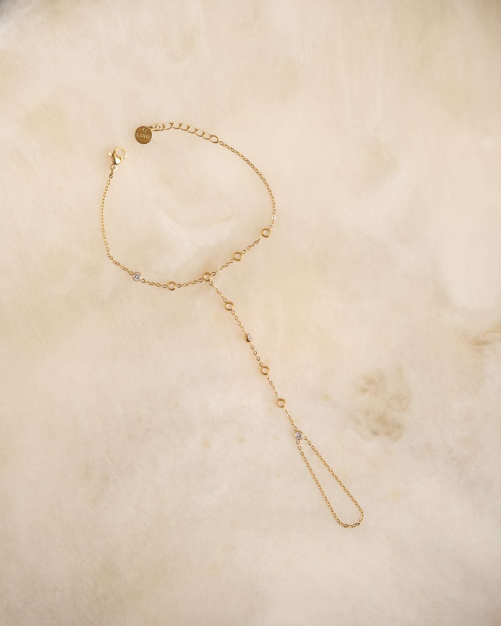 Diese silberne Handkette mit kleinen Punktverzierungen ist dezent und schick.