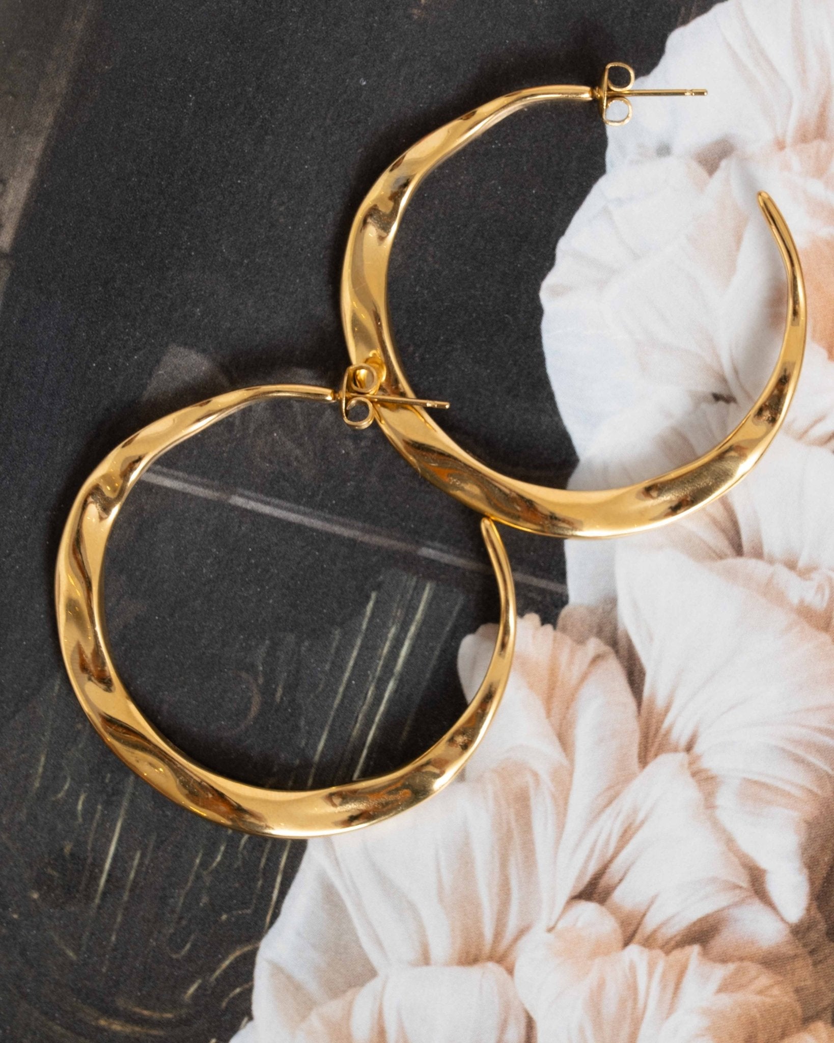 Diese geschwungenen Ohrringe bestechen durch ihre organische, fließende Form. Zeitlos und doch mit einem verspielten Touch, der jedes Outfit perfekt abrundet.