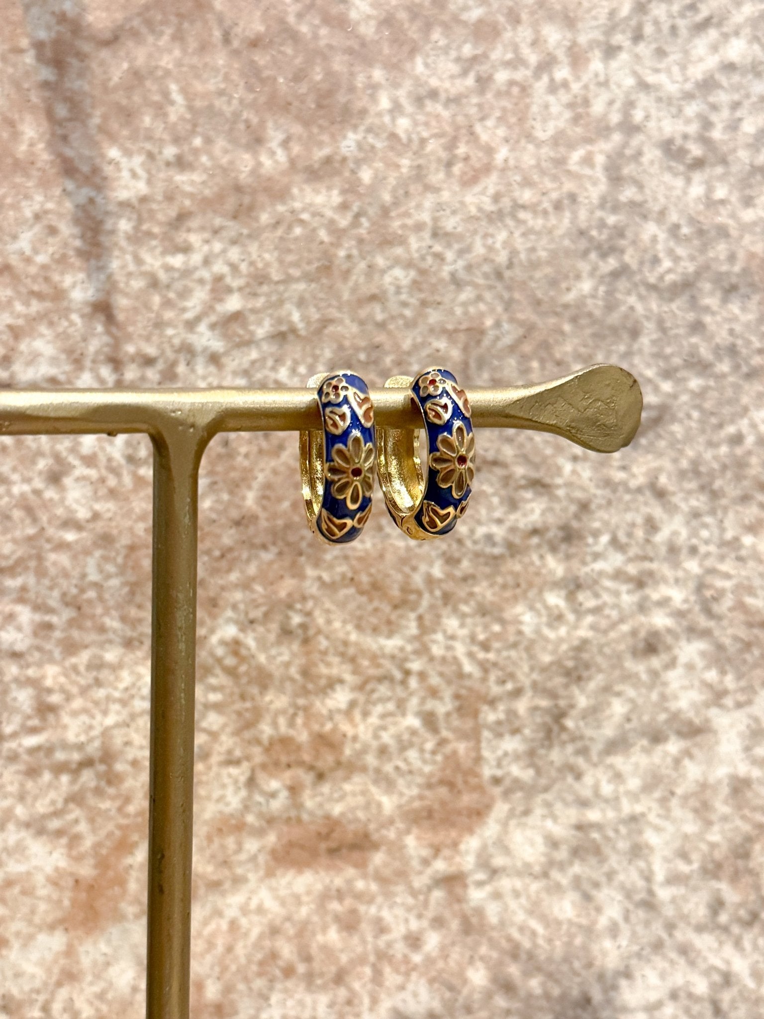 Ein voluminöser Creolen-Ohrring mit floralem Muster in wunderschönen dunklen Farben!