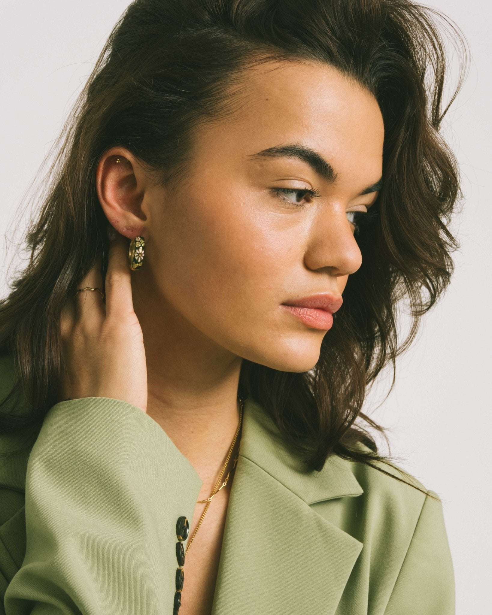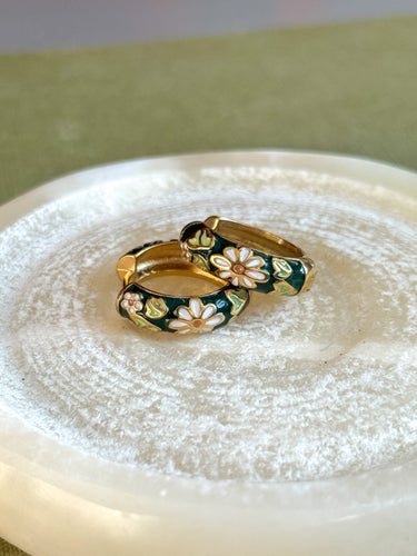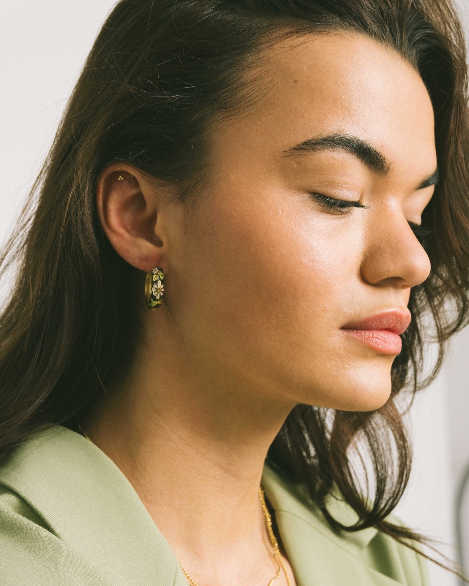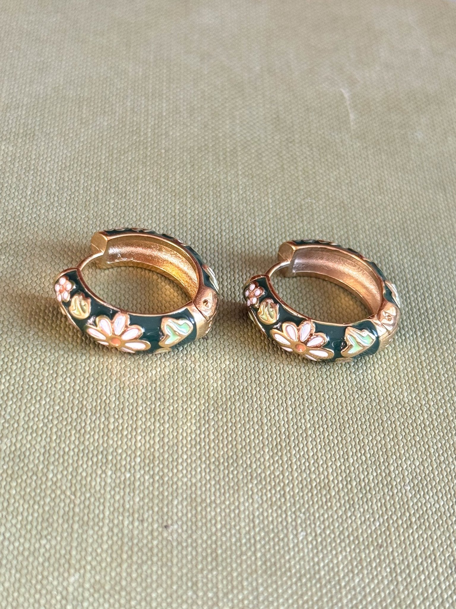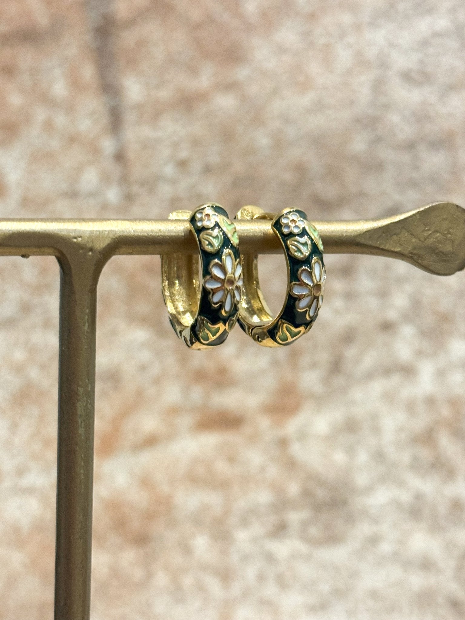 Ein voluminöser Creolen-Ohrring mit floralem Muster in wunderschönen dunklen Farben!
