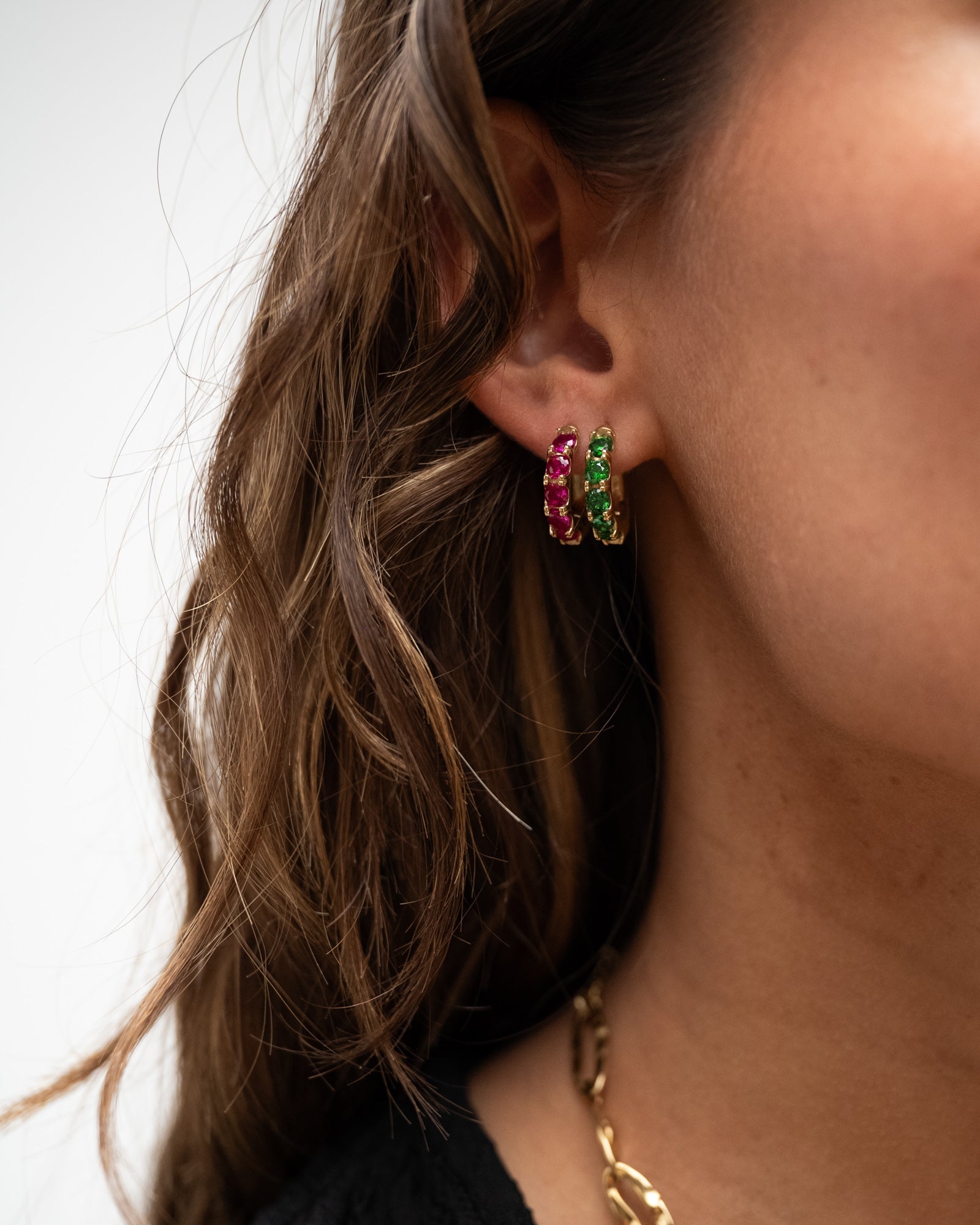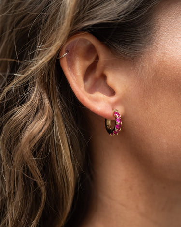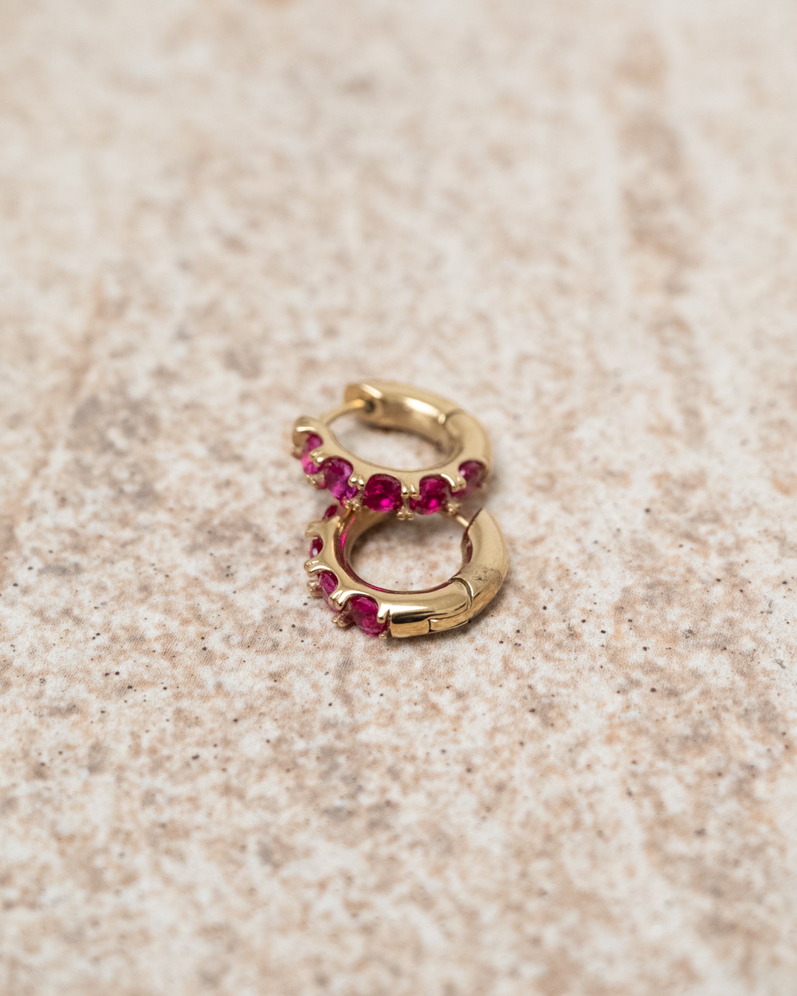 Kleiner Ohrring mit rosa Zirkoniasteinen. Sehr cool zu kombinieren mit dem passenden Ring!