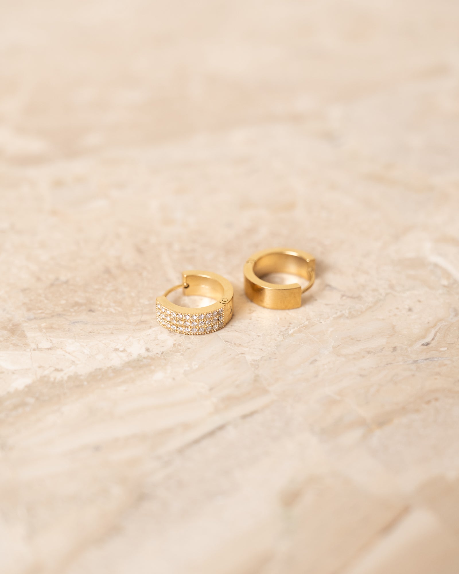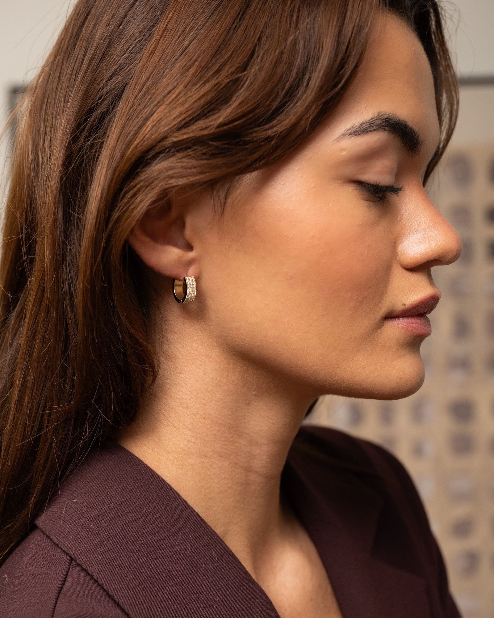 Goldene Creolen, die vollständig mit kleinen Zirkonia-Steinen besetzt sind.