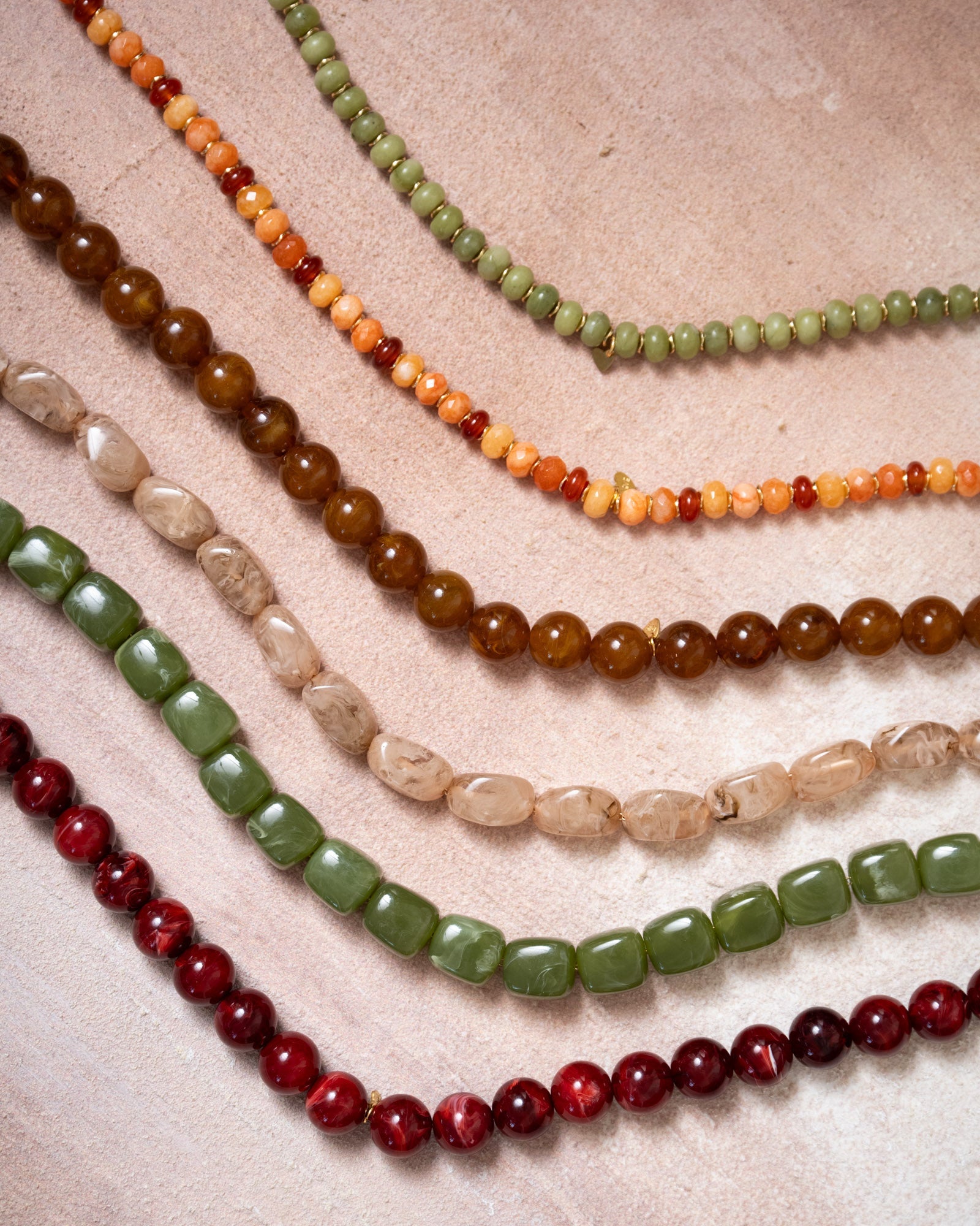 Wunderschöne Perlenkette mit orangefarbenen Steinen und goldenem Verschluss.