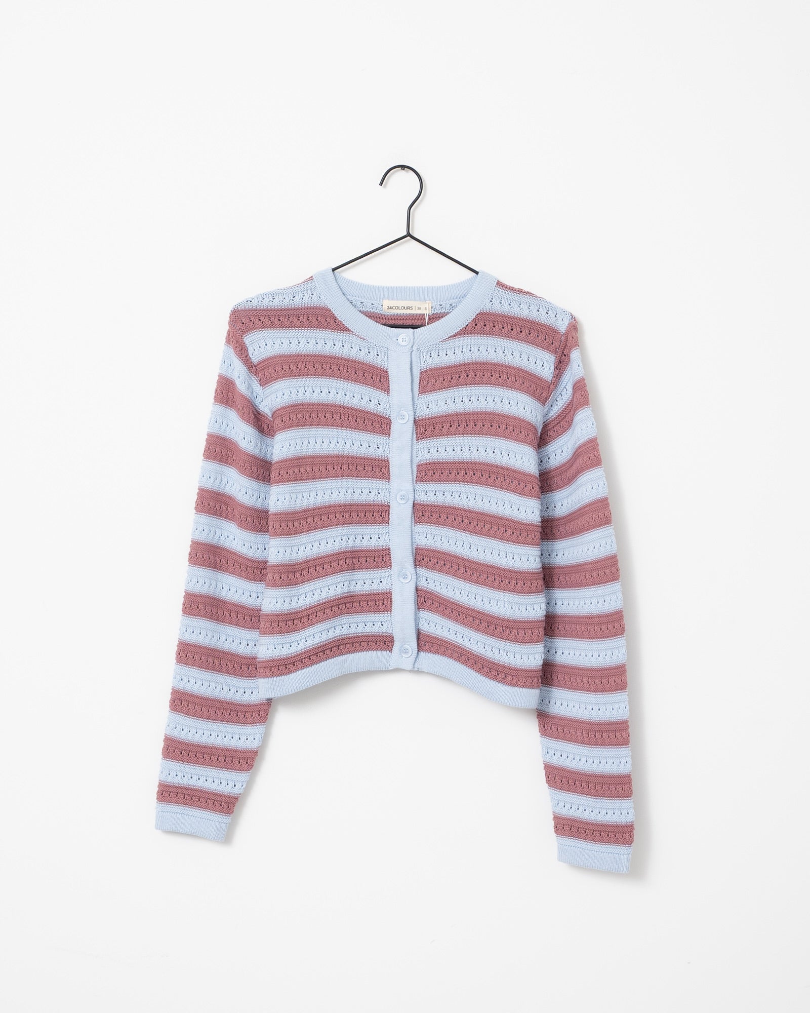 Lightweight striped cardigan with a slim fit and button closure. Perfect for a casual yet stylish look.